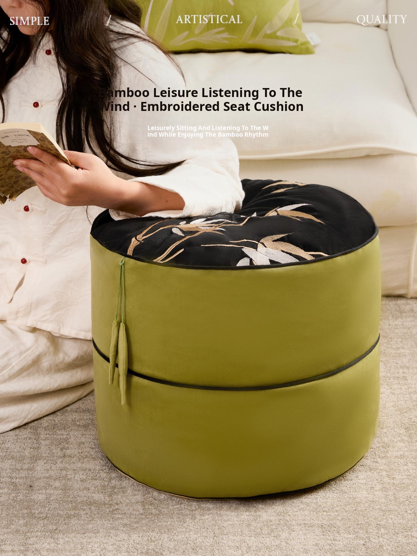 Chinese Embroidered Cushion Stool - Removable and Washable Rug Mat for Living Room, Tatami Floor Cushion, Small Ottoman Bench, Perfect for Relaxation and Decor