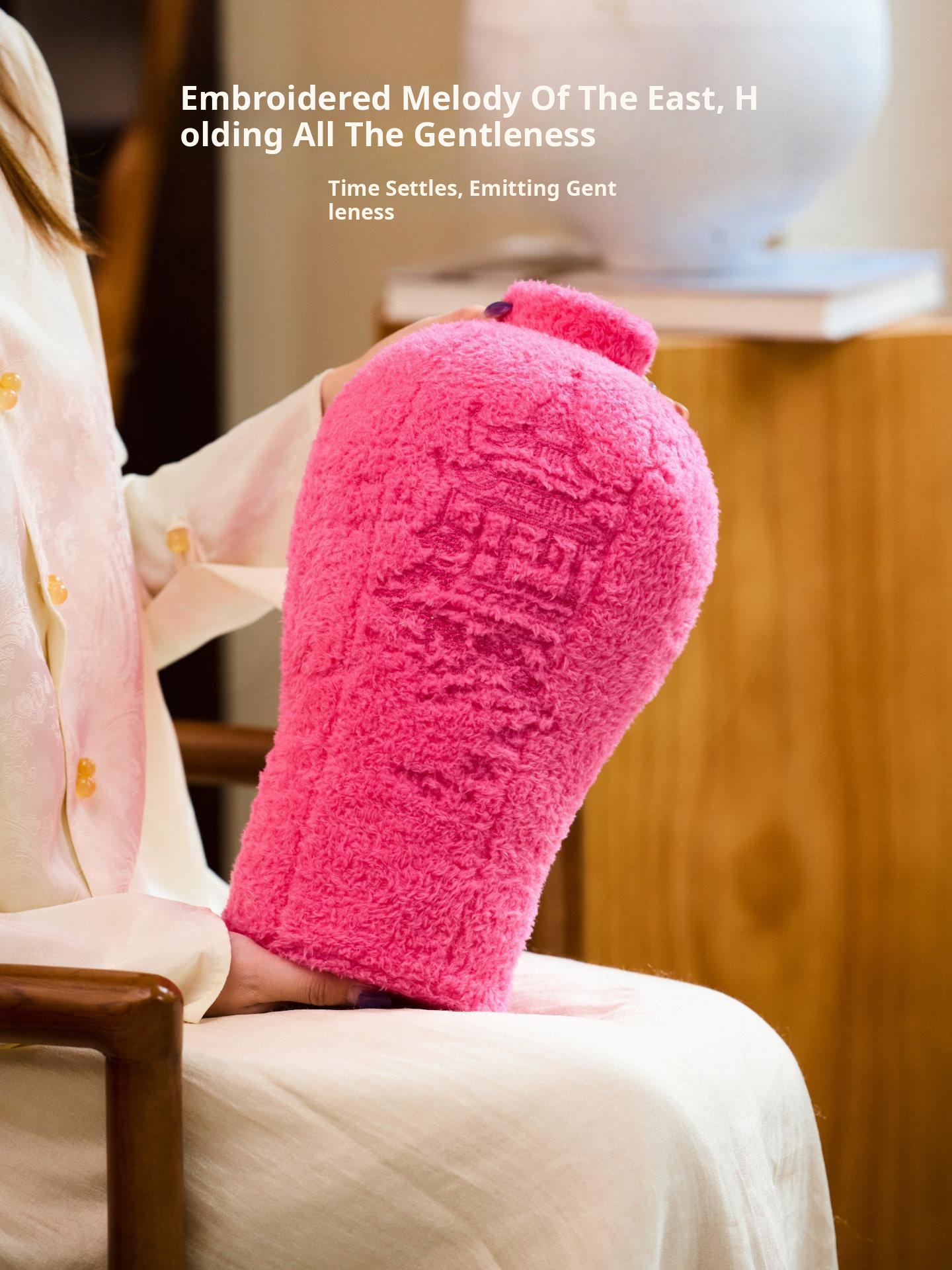 Caviosen New Chinese Style Plush Vase Pillow - Embroidered Decorative Piece for Living Room Table, Unique Shaped Gift for Home Decor