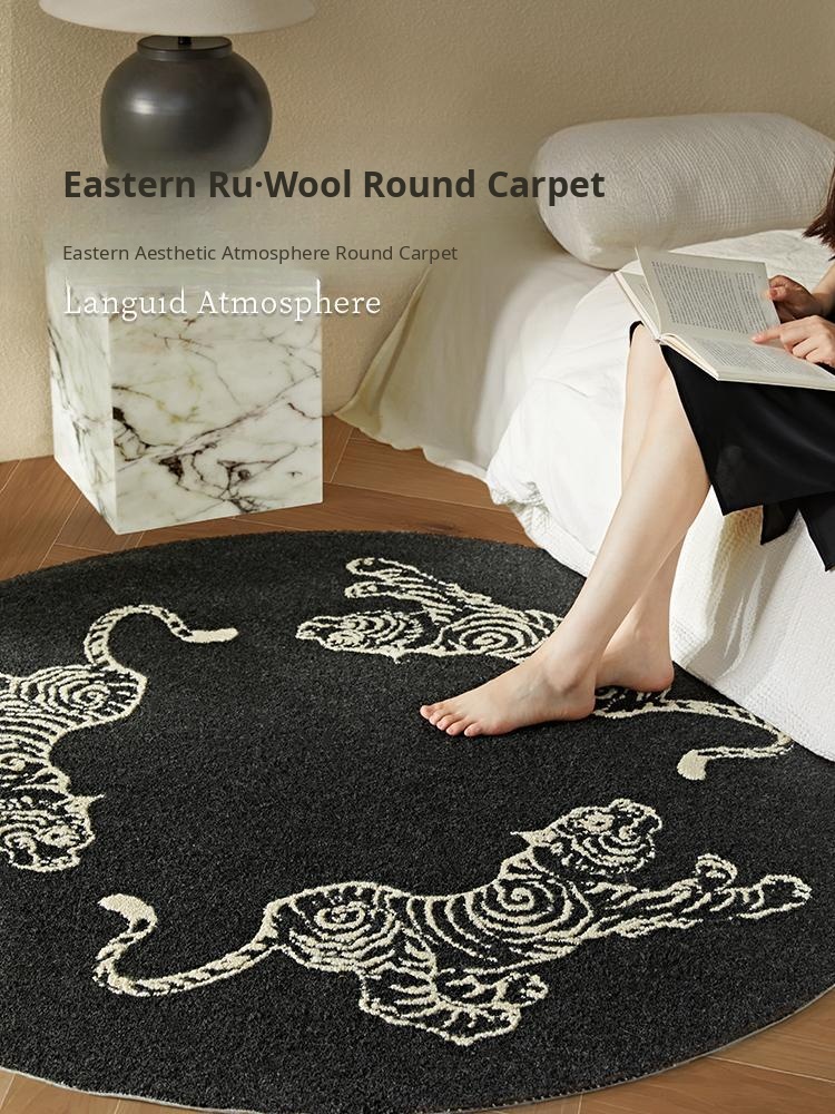 Chinese Style Round Wool Area Rug - Stain-Resistant Soft Carpet for Living Room, Sofa, Armchair, Entryway, and Makeup Chair. Perfect for Adding Elegance and Comfort to Your Space!