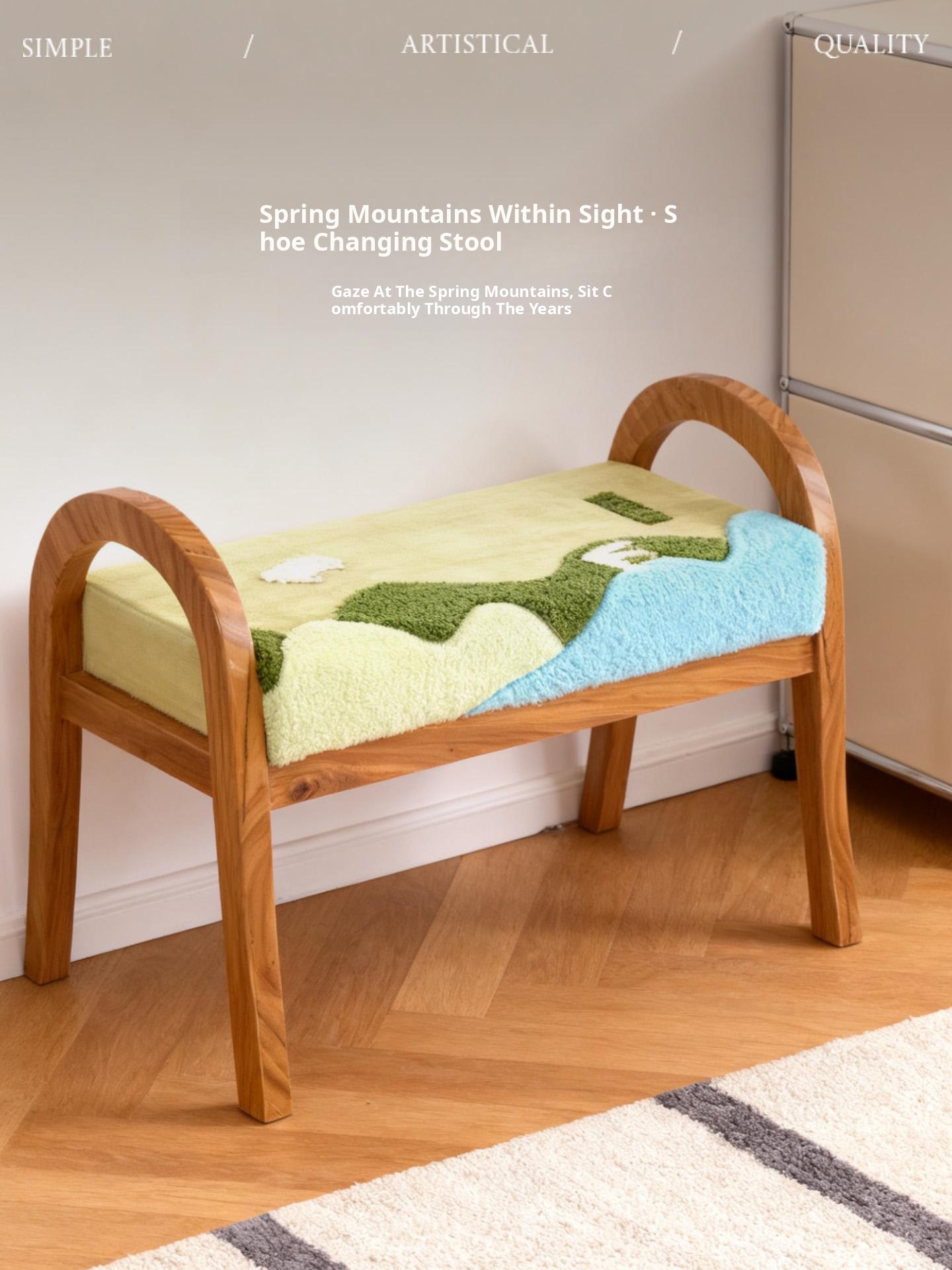 Spring Mountain Solid Wood Shoe Changing Bench - Stylish and Functional Entryway Stool for Home Use, Creative Long Bench for Hallway and Doorway, Art Sofa Stool