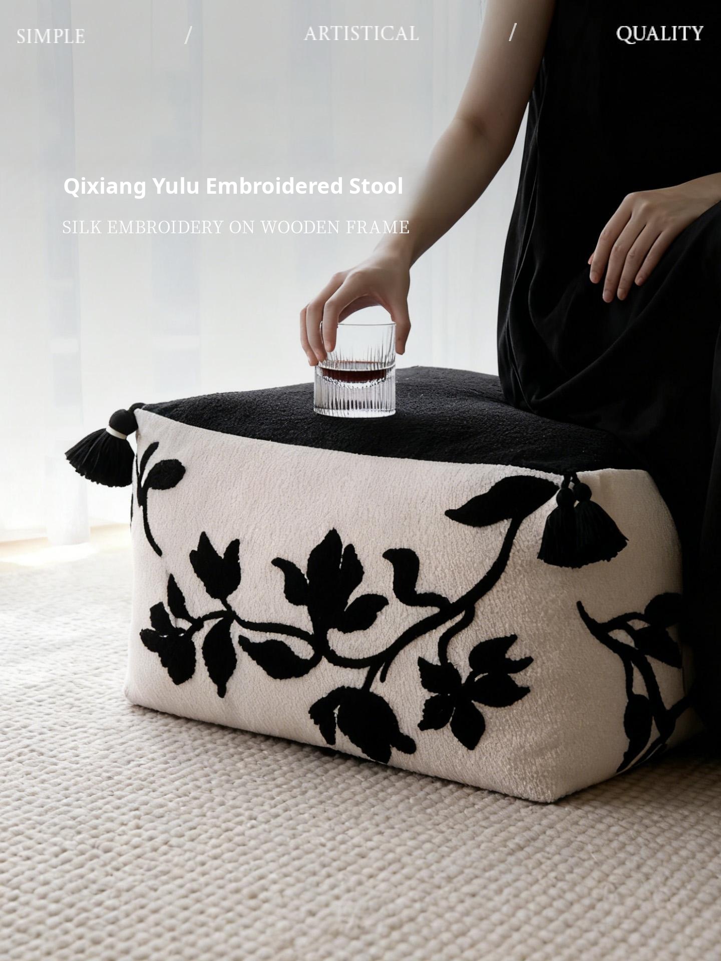 Caviosen Chinese Style Embroidered Floor Cushion - Tatami Window Seat Pouf for Living Room, Tea Table Stool, and Area Rug Accent. Perfect for Cozy Home Decor!
