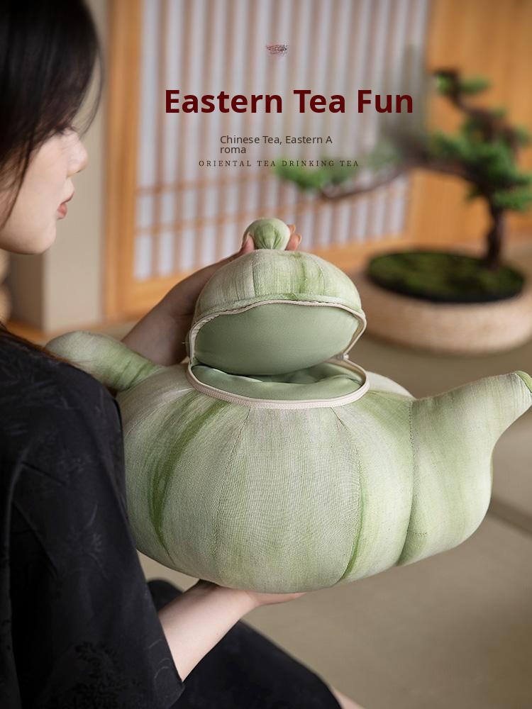 New Chinese Style Teapot Pillow - Elegant Sofa Decoration for Tea Culture, Unique Shaped Cushion Inspired by Song Dynasty Aesthetics, Perfect for Living Room Ambiance