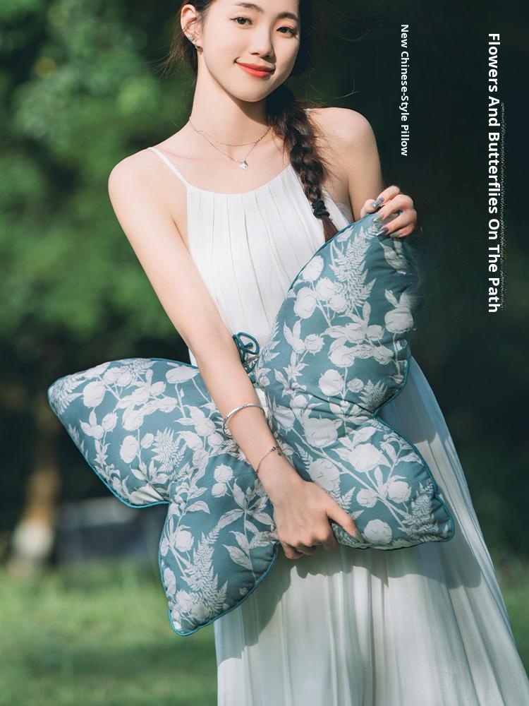 Elegant New Chinese Style Butterfly Throw Pillow - Unique Shaped Cushion for Living Room Sofa, Bay Window, and Bed. A Vintage Accent Piece with Premium Comfort for Lumbar Support. Perfect for Adding Sophistication to Your Home Décor!