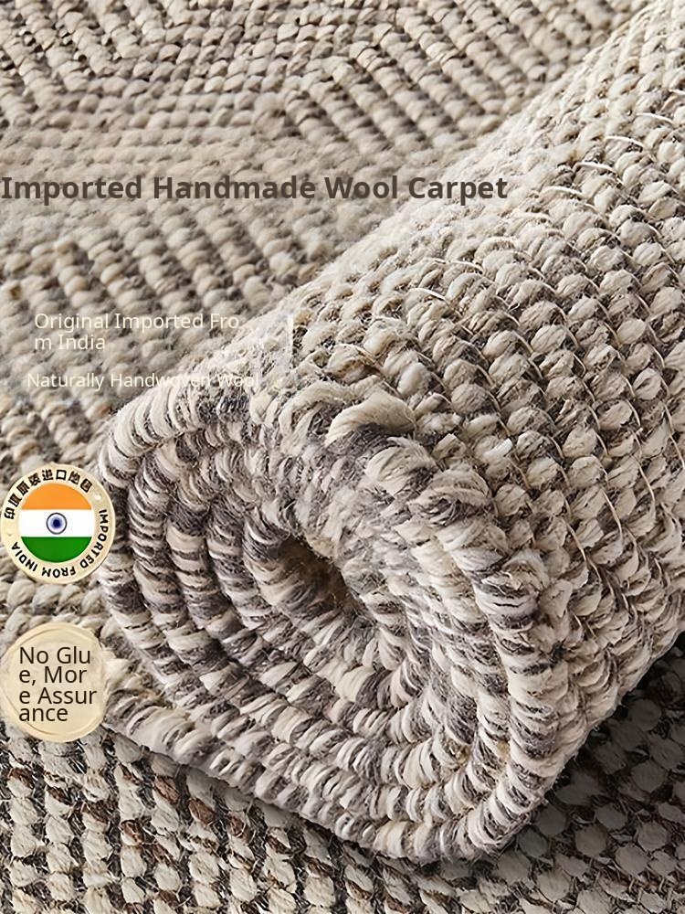 Handwoven Indian Wool Carpet - Glue-Free, Perfect for Bedroom, Living Room & Sofa - Elegant Solid Color Area Rug for Bedside & Coffee Table