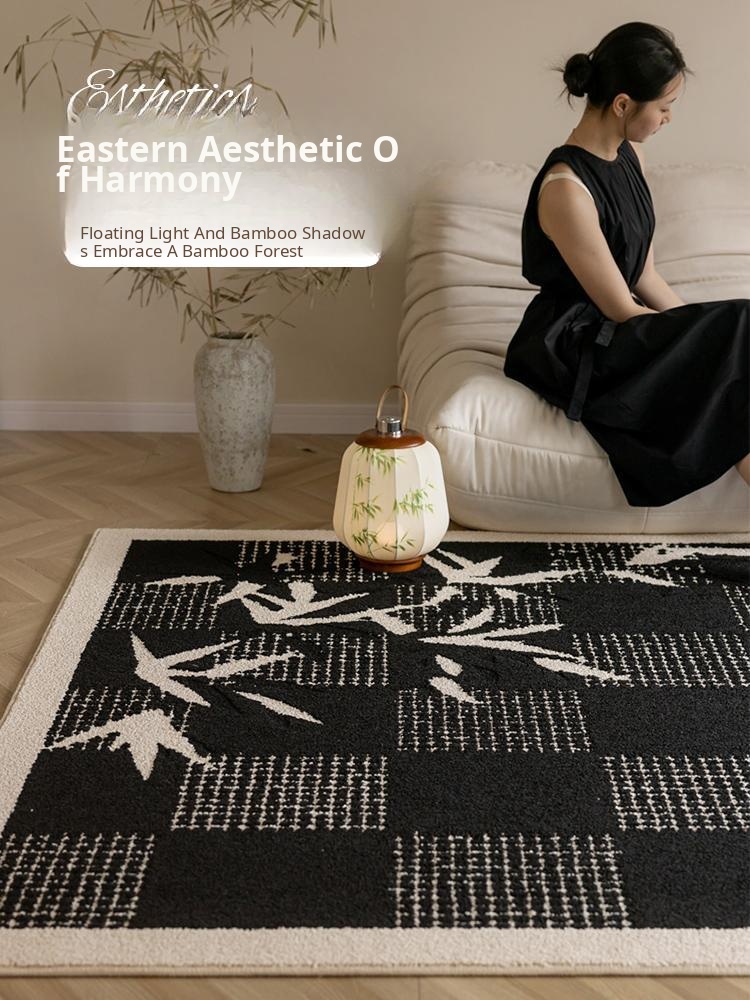 Elegant New Chinese Style Bamboo Waterproof and Stain-Resistant Area Rug for Living Room - Perfect for Sofa and Coffee Table, Ideal for Study and Bedroom - Black Color