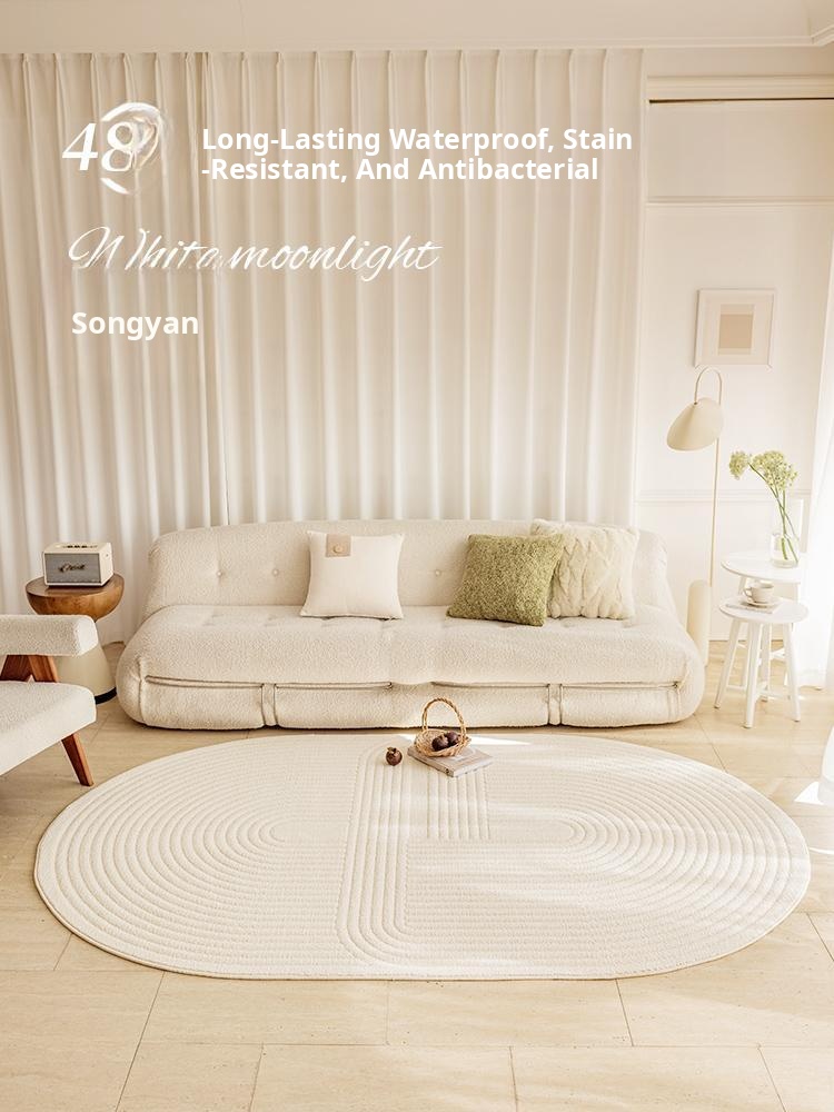 French Waterproof and Stain-Resistant Oval Living Room Carpet - Luxurious Creamy Irregular Design for Sofa and Coffee Table, Soundproof Bedside Mat