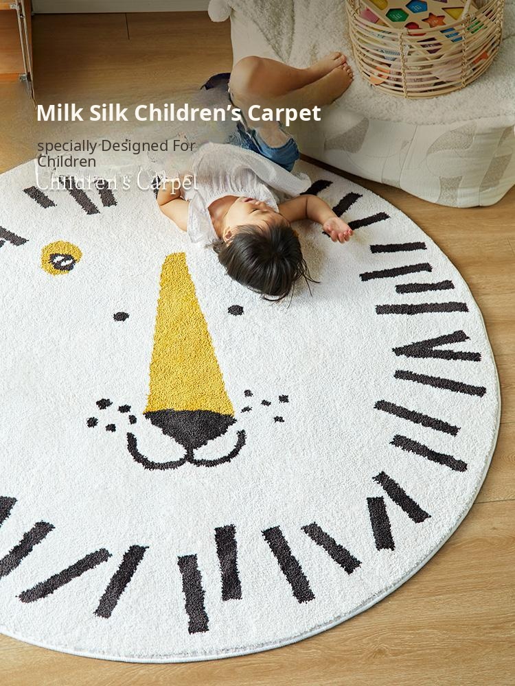 Kids' Room Round Area Rug - Premium Non-Slip Thick Milk Silk Carpet with Cartoon Design for Reading Nook and Bedside Use, Perfect for a Cozy and Stylish Space