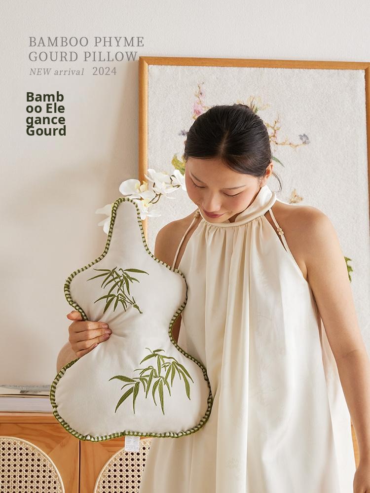 Elegant New Chinese-Style Asymmetrical Gourd Sofa Pillow - Luxurious Feel with Traditional Chinese Aesthetic for Living Room or Bedside Support, Includes Insert