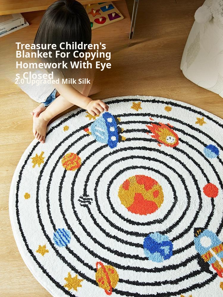 Cute Cartoon Round Rug - Thickened Milk Silk Children's Room Bedroom Reading Area Mat - Cozy Home Bedside Carpet