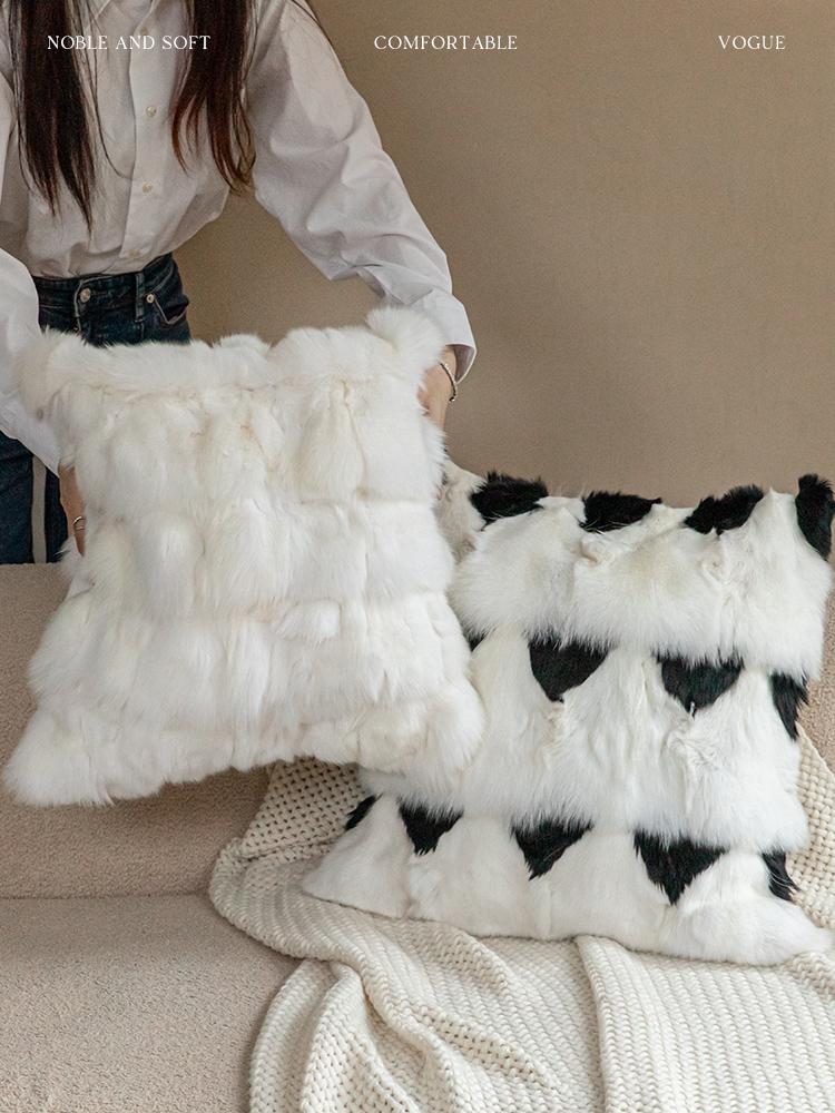 Caviosen Genuine Leather Fur Throw Pillow - High-End Luxury Modern Design for Living Room Sofa, Bedside, and Bay Window - Stylish Support Cushion for Ultimate Comfort and Elegance