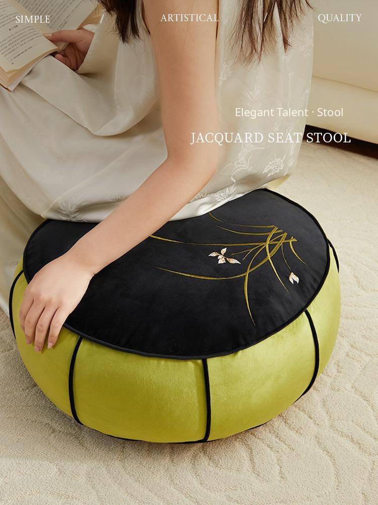 Caviosen Chinese Style Embroidered Floor Cushion - Tatami Window Seat Pouf for Living Room, Tea Table Stool, and Area Rug Accent. Perfect for Cozy Home Decor!