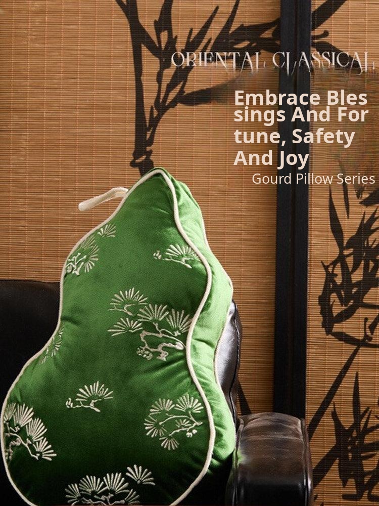 Chinese-Style Decorative Gourd-Shaped Pillow Cover - Luxurious Fulu Waist Support for Sofa and Office Chairs, Includes Cushion Insert, Ideal for Living Room Comfort