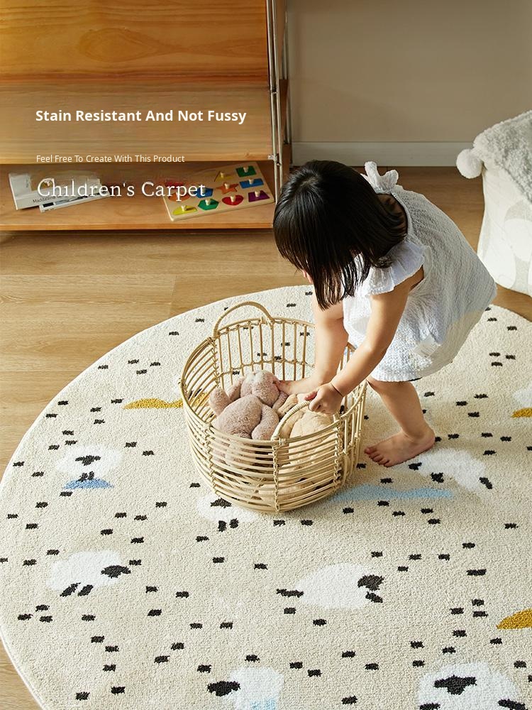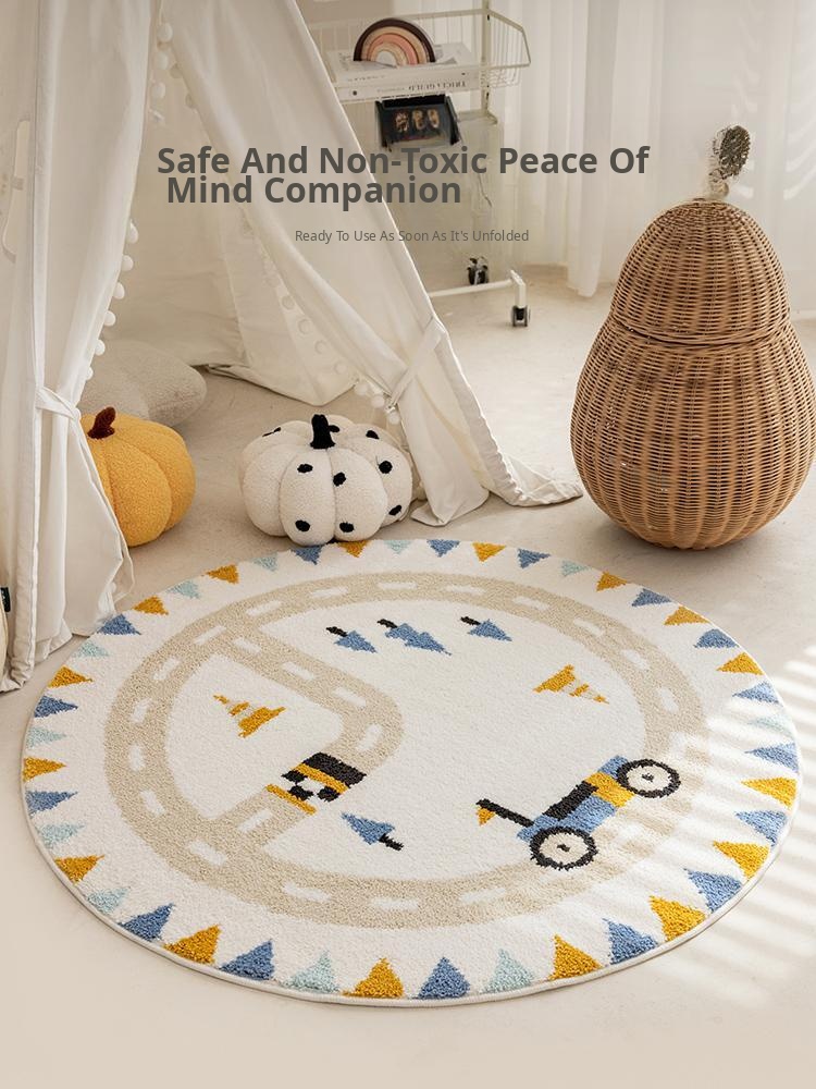 Kids' Cartoon Round Area Rug - Cozy Floor Mat for Living Room, Bedroom, Reading Nook, Home Office, and Play Area - Soft Thick Crawling Mat for Comfort and Fun