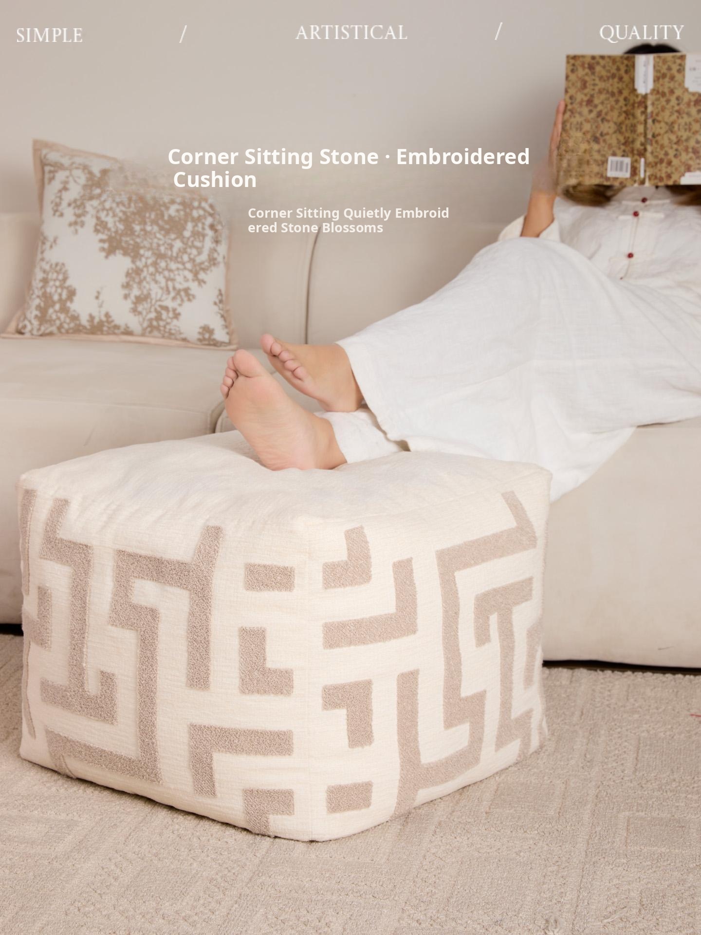 Stylish French-Style Floor Cushion - Versatile Sofa Pouf for Living Room, Lazy Chair, Tatami Square Stool, Perfect for Shoe Changing and Relaxation