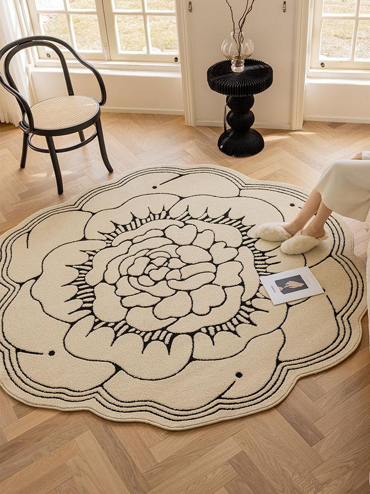 Unique Waterproof and Stain-Resistant Camellia Area Rug - Perfect for Bedroom, Closet, or Bedside, Easy to Clean and Maintenance-Free, Ideal for Living Room Sofa and Coffee Table