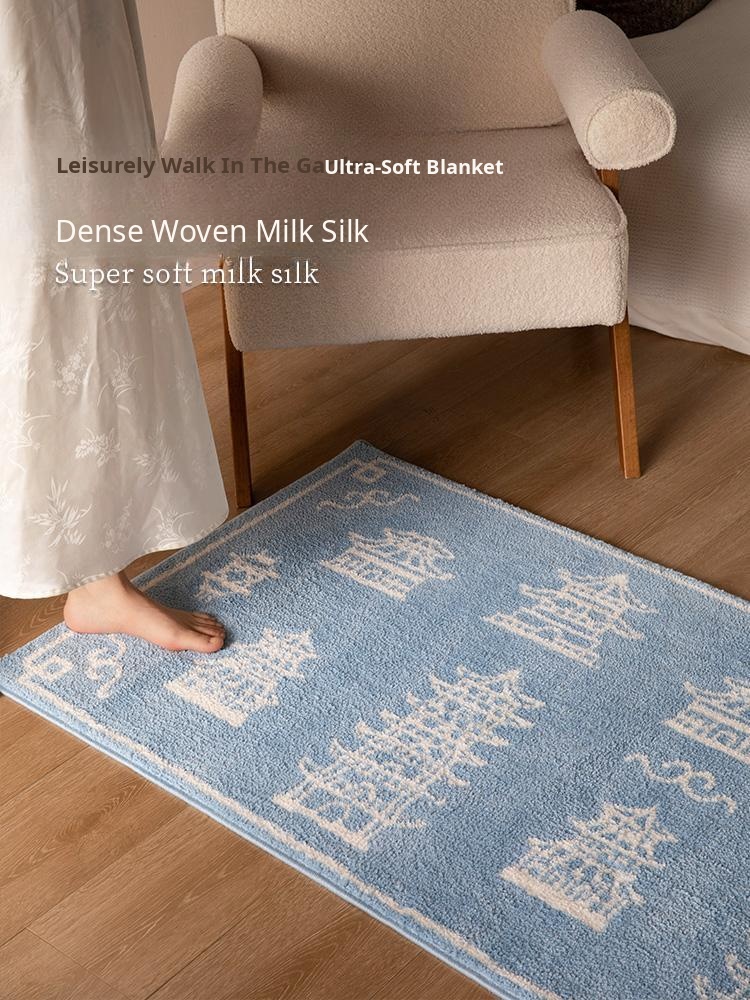 Luxurious New Chinese Style Milk Silk Carpet for Living Room - Thickened Sofa and Coffee Table Mat, Perfect for Bedroom and Wardrobe Use, Long Rectangular Design for Bedside Elegance