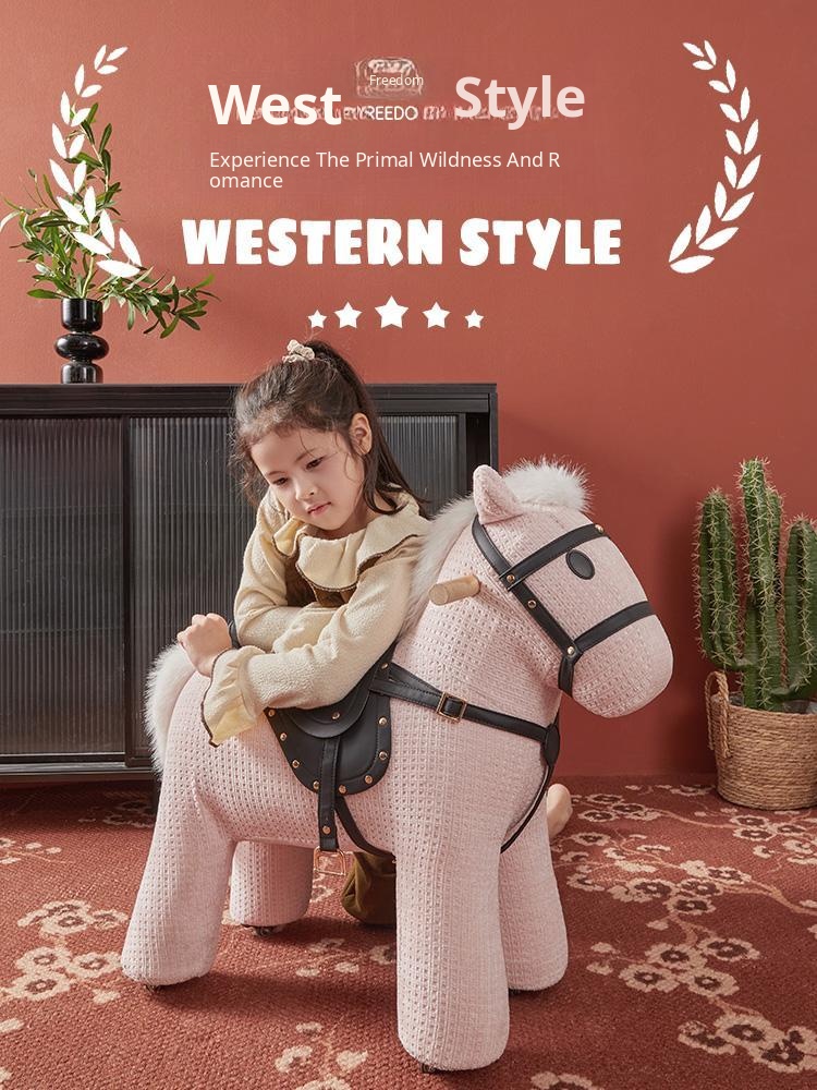 Creative Cartoon Pony Stool with Wheels - Ride-On Rocking Horse for Kids, Trendy and Fun Plush Animal Chair, Perfect for Playtime and Imaginative Adventures!