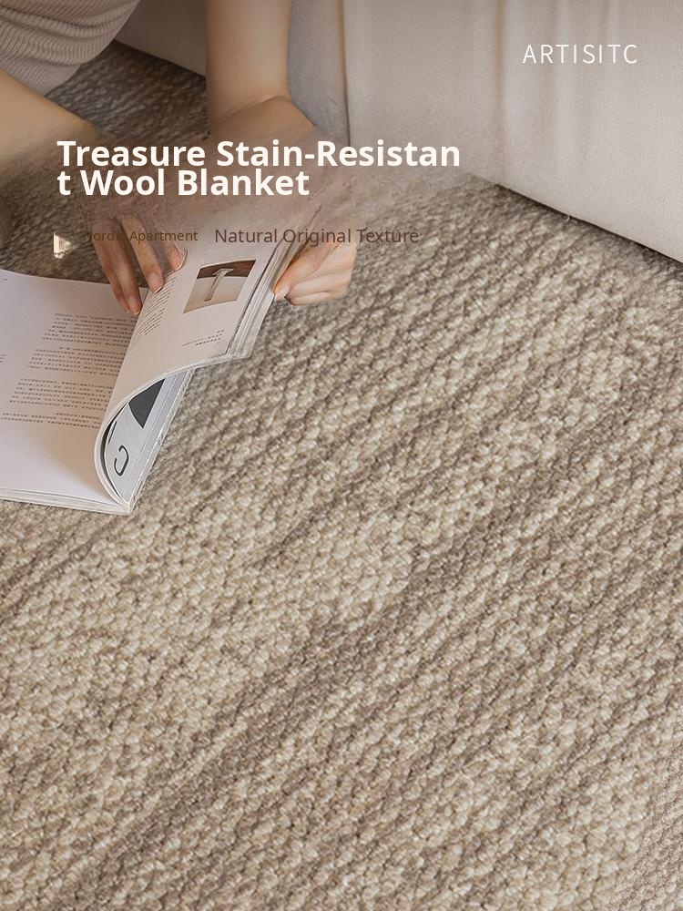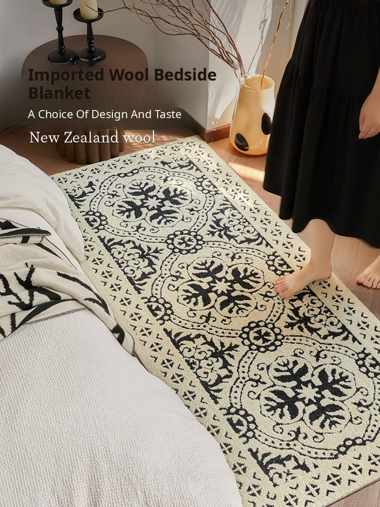 New Zealand Imported Wool Stain-Resistant Carpet - Wabi-Sabi Vintage Style Sofa Cushion, Lightweight Luxury Bedroom Bedside Rug, Chic Coffee Table Mat