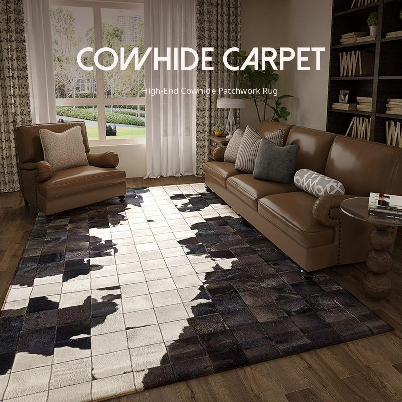 Luxury Black and White Patchwork Leather Area Rug for Living Room - Easy to Clean, High-End Feel, Perfect for Bedroom, Sofa, and Coffee Table Decor