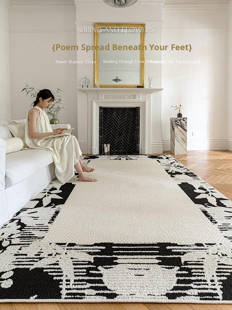 Wabi-Sabi Style INS Living Room Carpet - French Cream High-End Luxury Bedroom Bedside Rug, Low Maintenance Sofa Blanket