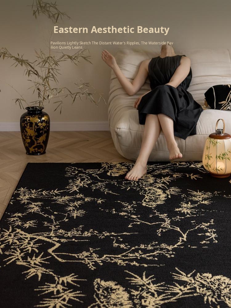 Elegant Chinese Style Vintage Living Room Carpet - Waterproof, Stain-Resistant, Easy Care Bedroom Bedside Mat