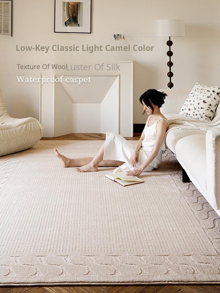 Waterproof and Stain-Resistant Living Room Carpet - Easy-Clean Wabi-Sabi Style Luxury Area Rug for Sofa - Minimalist Home Mat for Bedroom