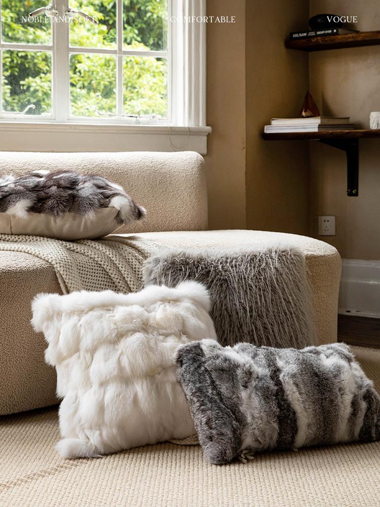 Premium Fox Fur Pillow - Luxurious Accent for Living Room Sofa, Genuine Leather and Fur Design, Perfect for Headboards or Sample Rooms, Stylish Cushion Cover for Ultimate Comfort.