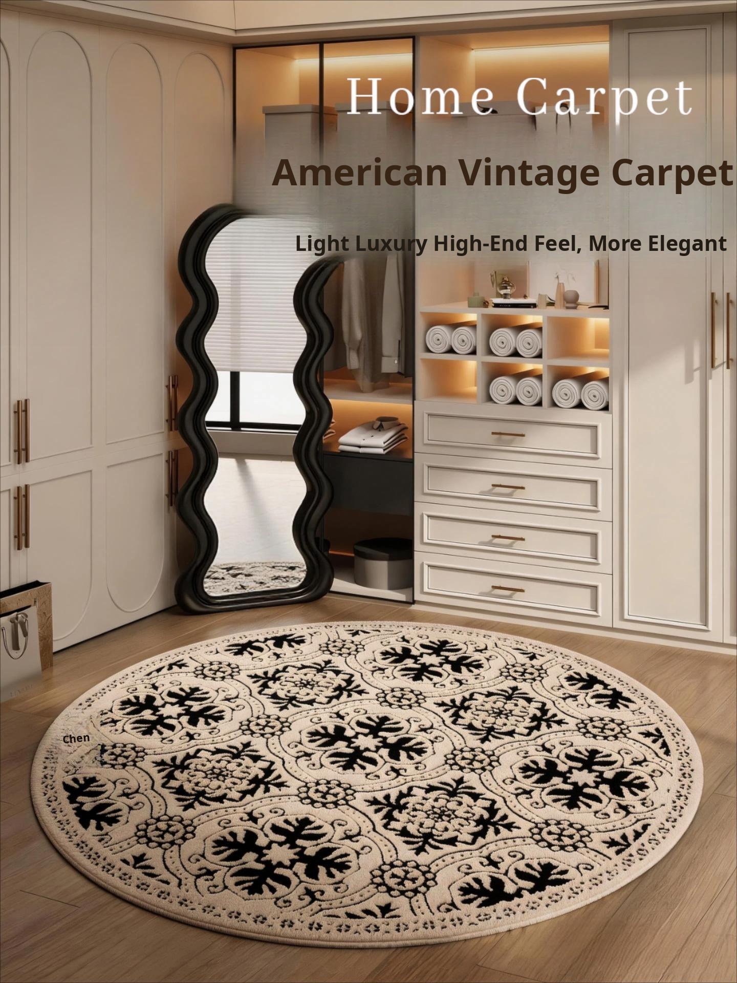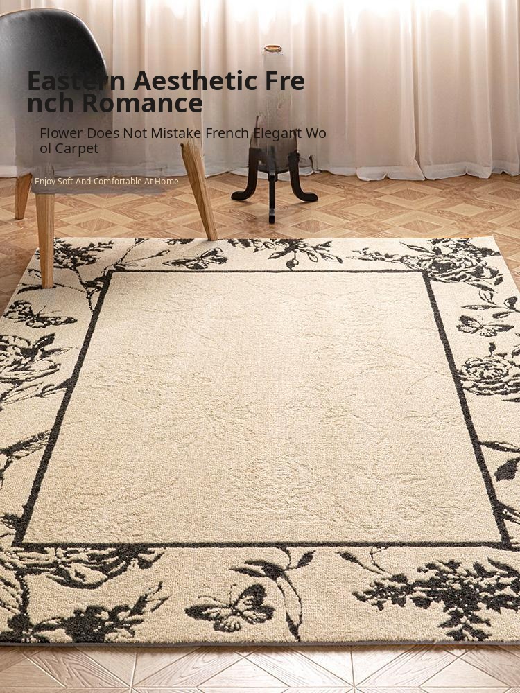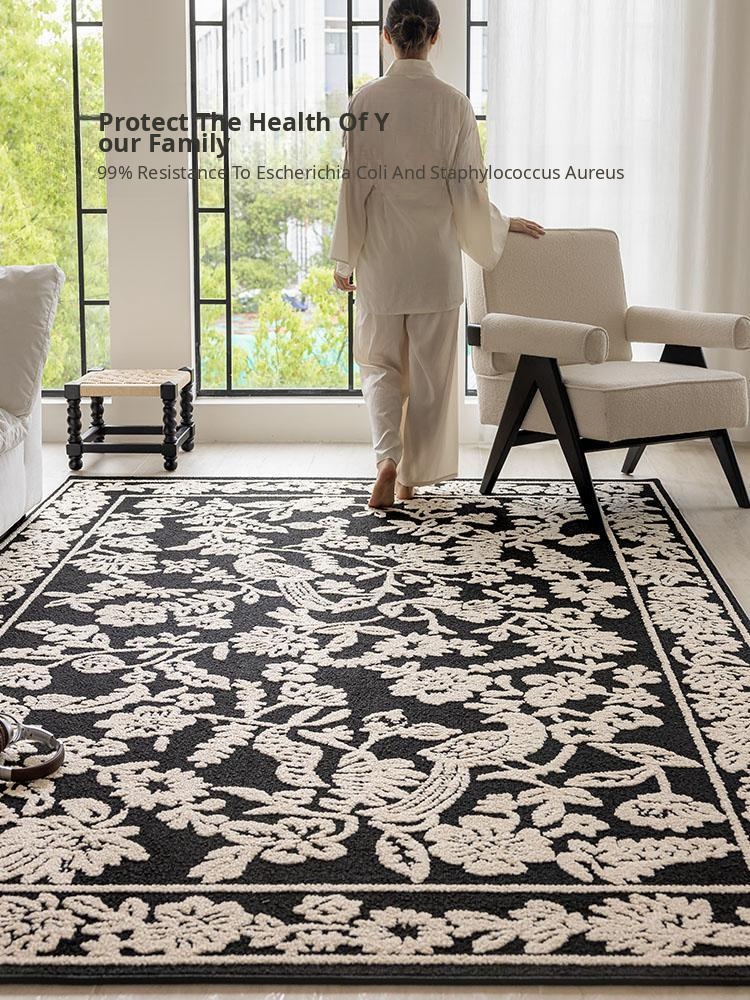 French Vintage Style Elegant No-Maintenance Living Room Carpet - New Chinese Waterproof, Stain-Resistant, and Easy-Clean Bedroom Mat