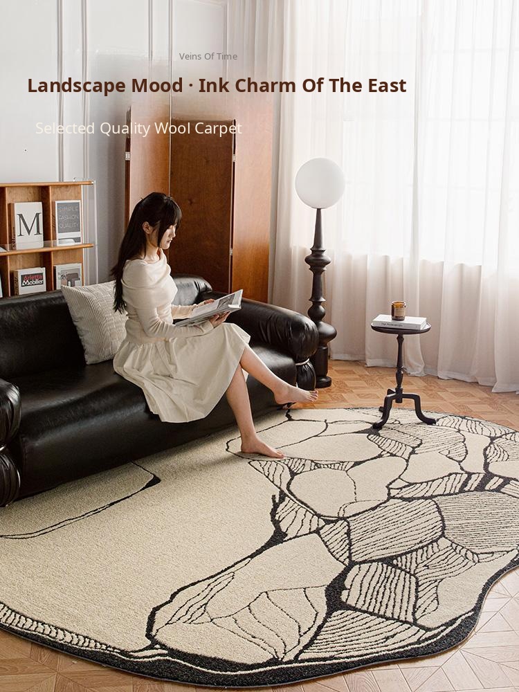 Stylish Irregular Shaped Carpet - Luxurious Wabi-Sabi Wool Area Rug for Living Room and Bedroom, Perfect for Bedside Décor in Scandinavian Style