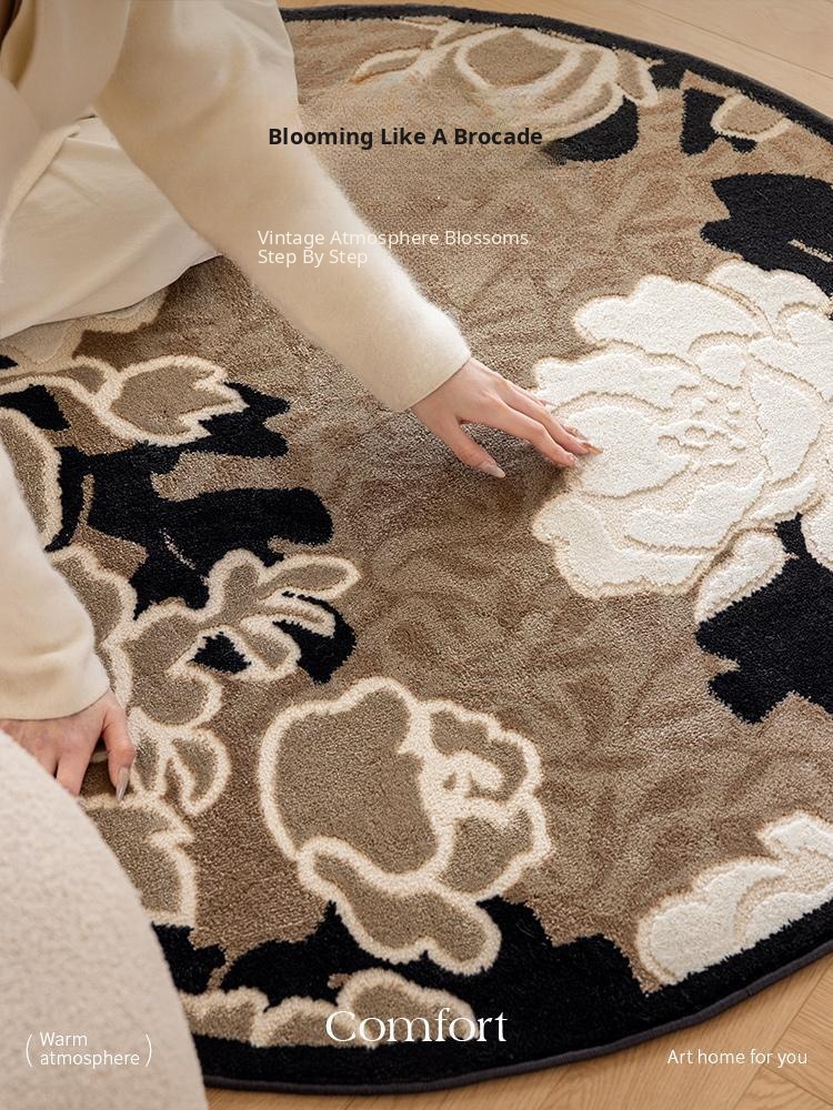 French Vintage Round Area Rug - Luxurious Bedroom Bedside Mat, Durable Living Room Sofa and Coffee Table Carpet, Perfect for Chairs and Balconies - Elevate Your Home Décor