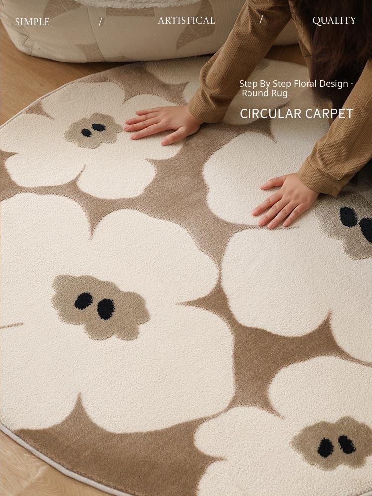 Wabi-Sabi Inspired Round Living Room Rug - Waterproof and Stain-Resistant Coffee Table & Sofa Blanket - Luxurious Yet Affordable Bedside Mat for Your Bedroom