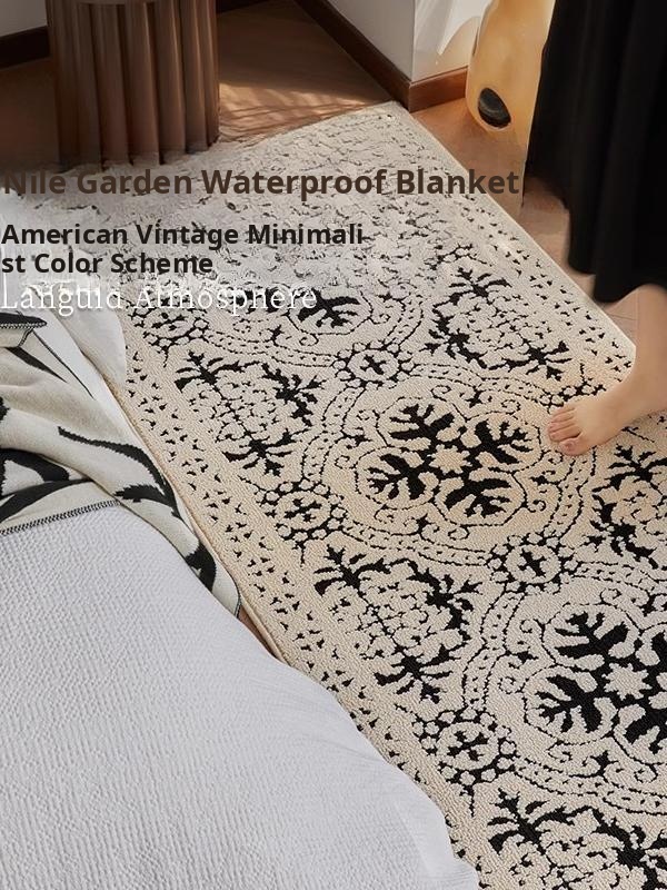 French Vintage Living Room Carpet - High-End Wabi-Sabi Style Waterproof and Stain-Resistant Bedroom Bedside Rug, Perfect for Sofa and Coffee Table Décor.