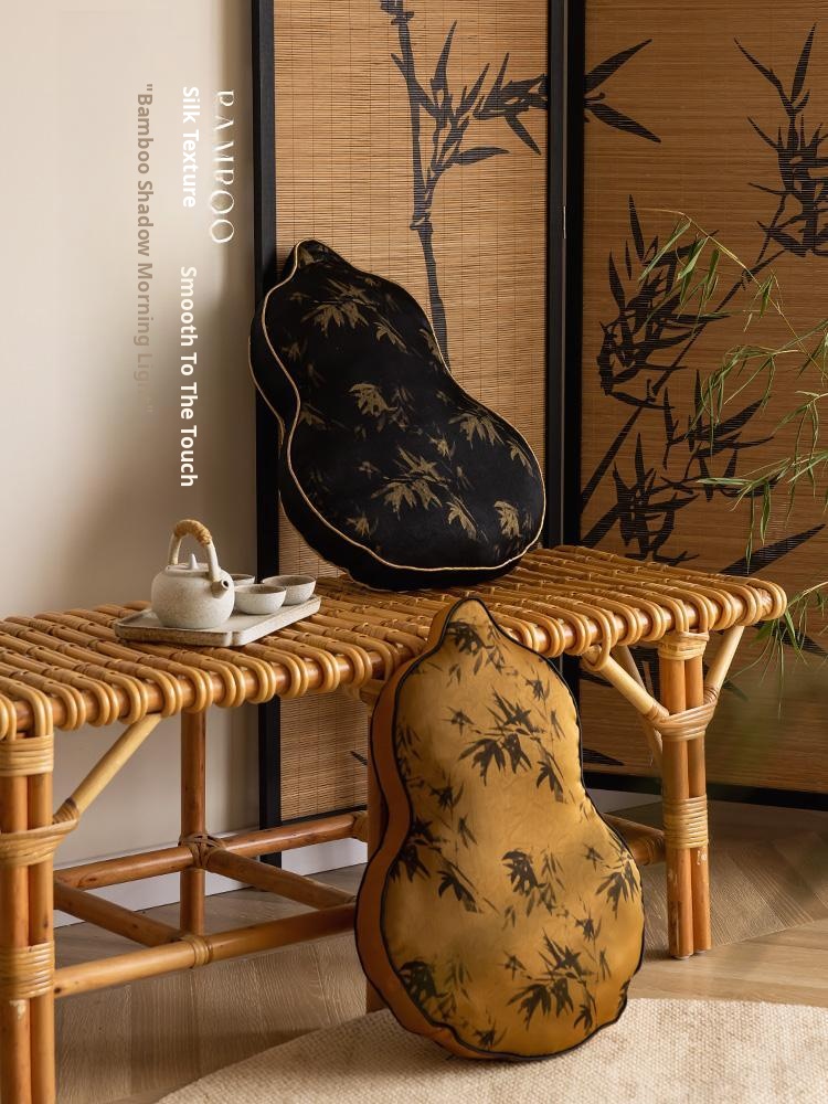 Elegant Chinese-Style Black Gourd-Shaped Throw Pillow for Sofa - Includes Insert, Perfect for Living Room Décor, Back Support Cushion with a Touch of Traditional Charm