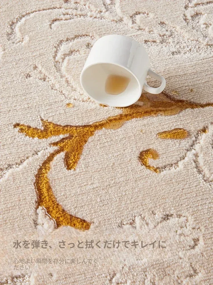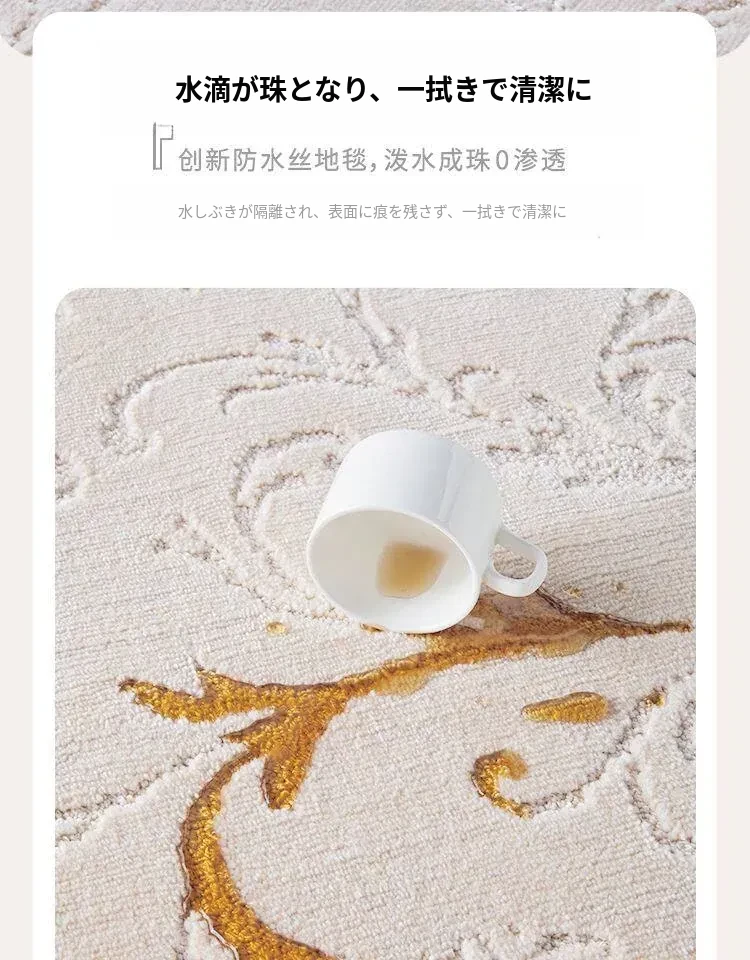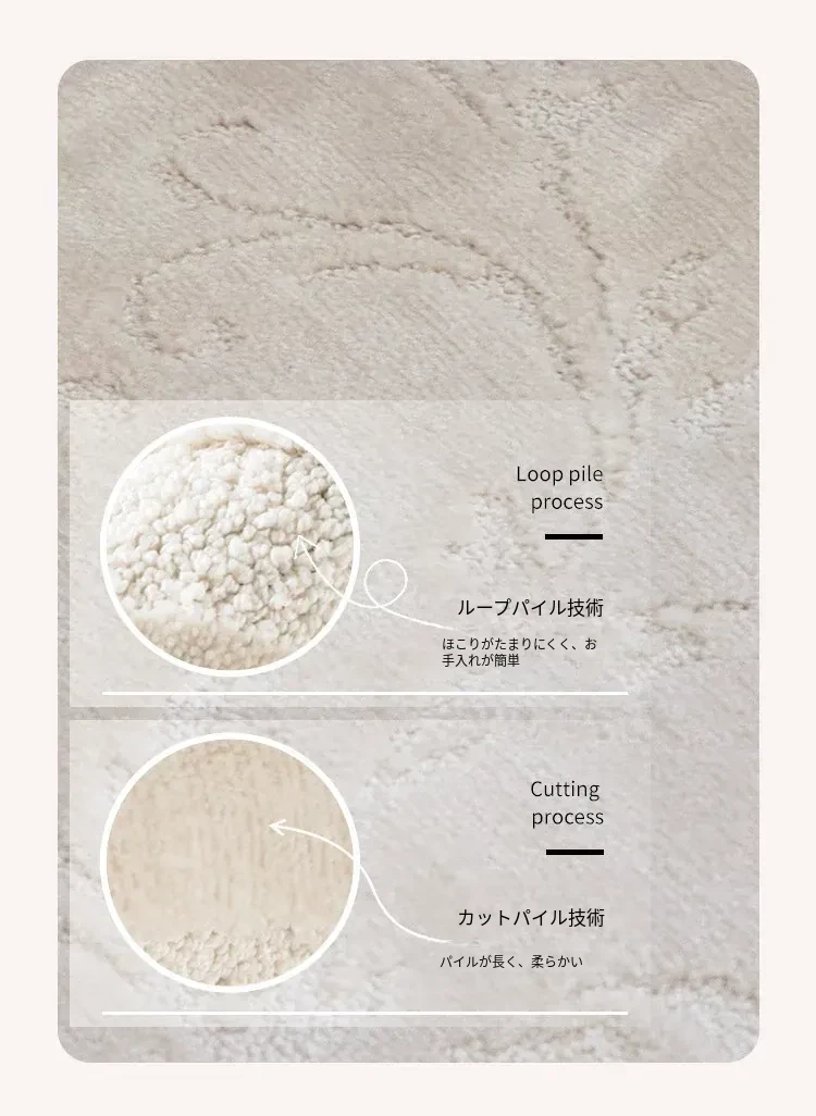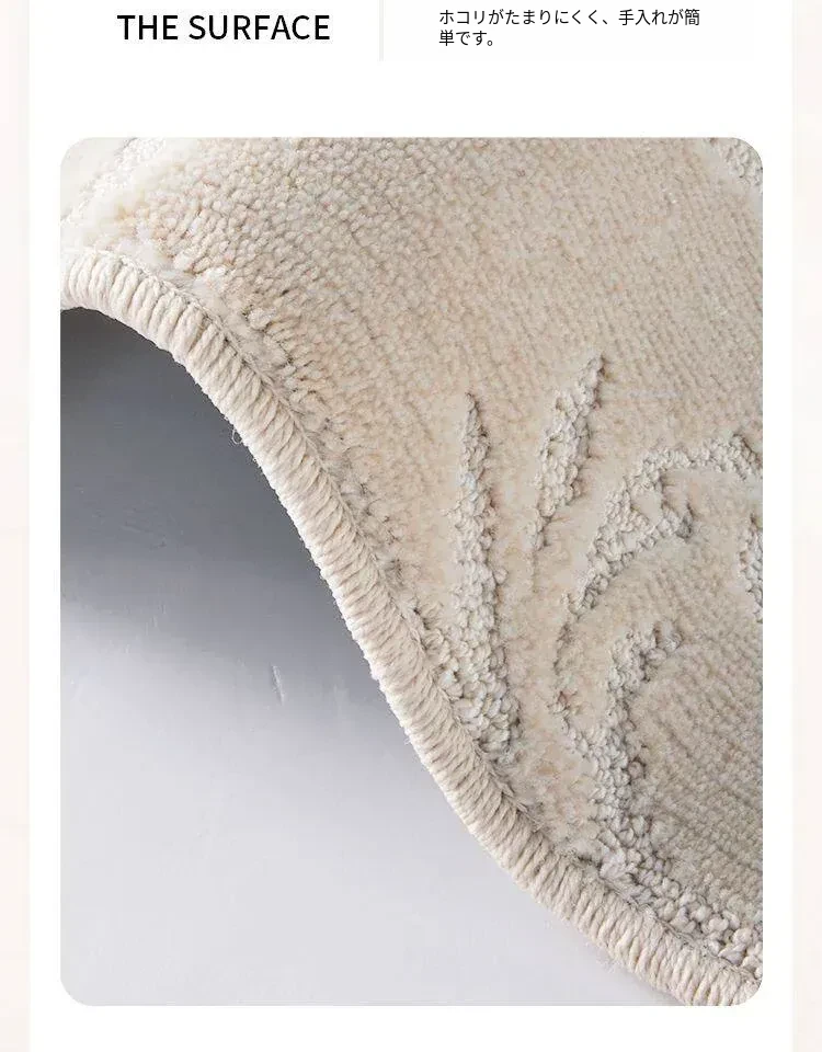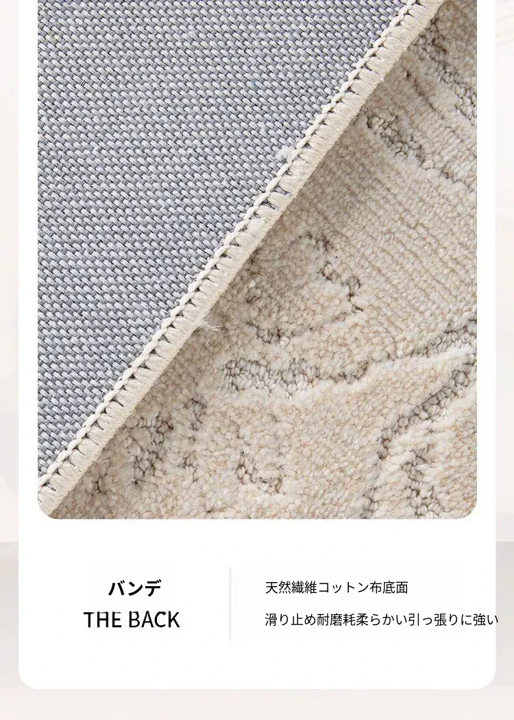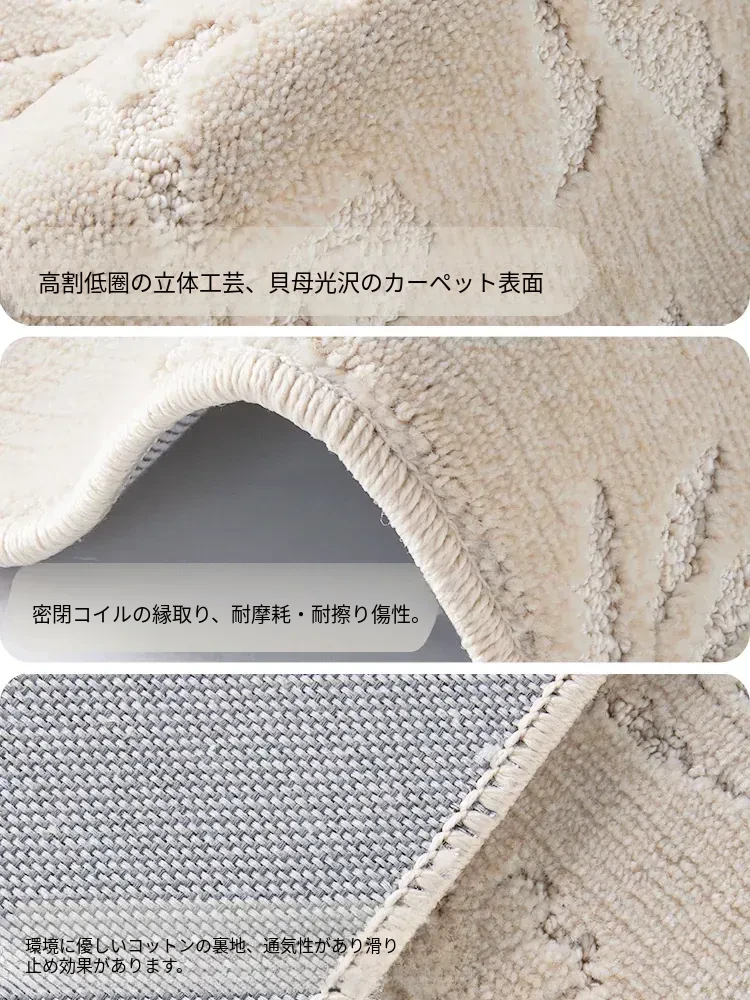 2026新作!高割低圈デザインのリビングカーペット - 寝室のベッドサイドにぴったり!お手入れ不要の防水マット、侘寂風でおしゃれに演出。滑り止め付きで安心!