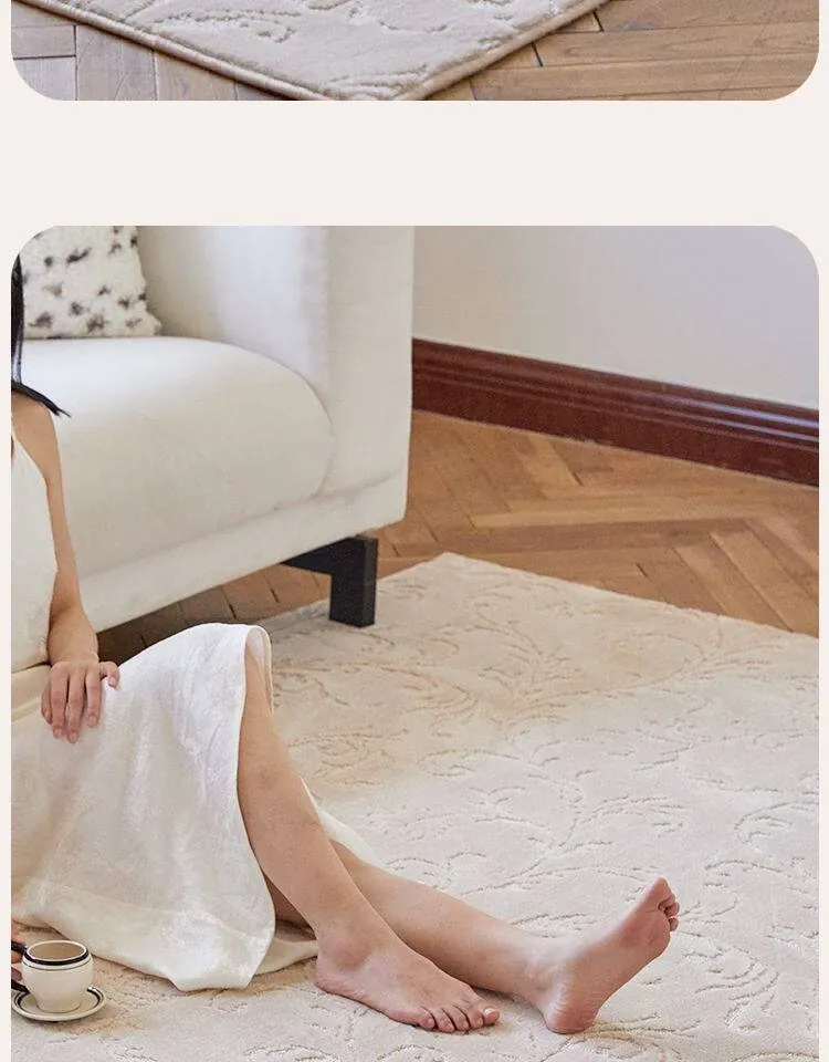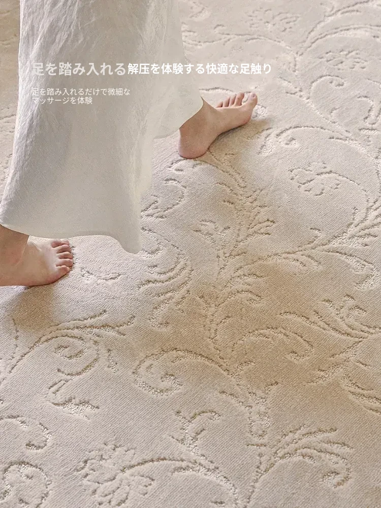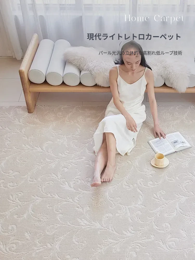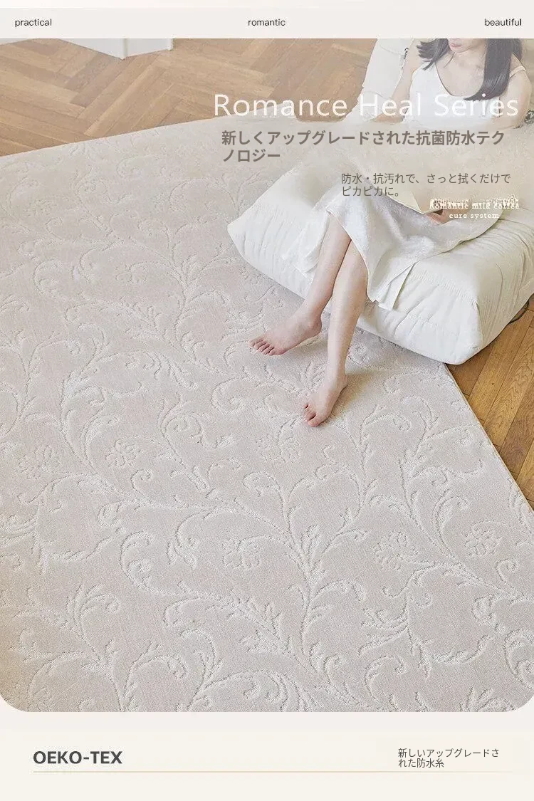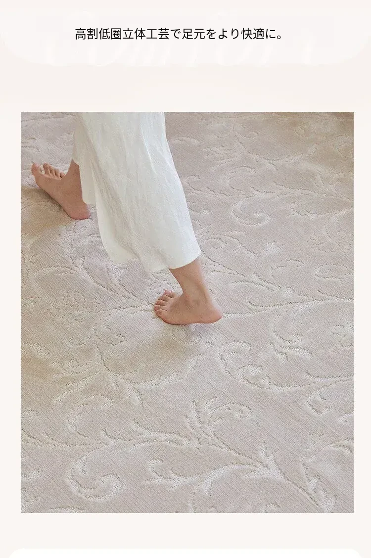2026新作!高割低圈デザインのリビングカーペット - 寝室のベッドサイドにぴったり!お手入れ不要の防水マット、侘寂風でおしゃれに演出。滑り止め付きで安心!
