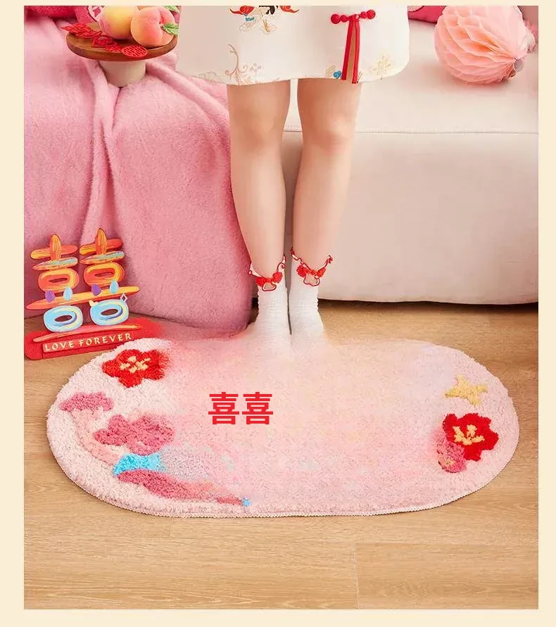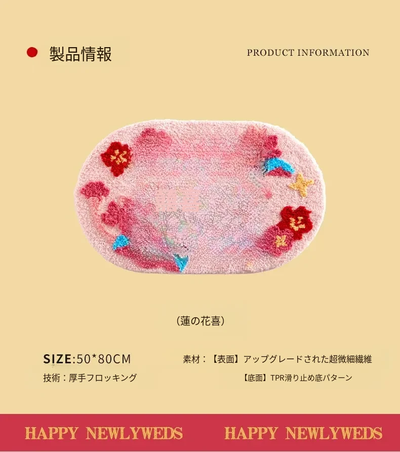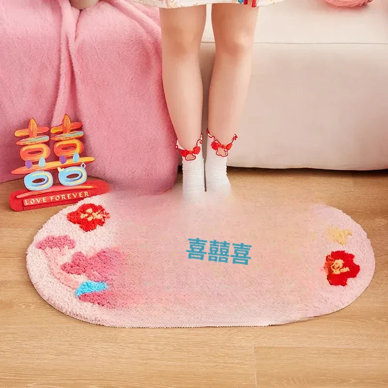 2026年新作!おしゃれな楕円形の祝いのベッドサイドマット|家庭用エントランスマット|リビングルームにもぴったりの結婚式飾りマット!快適さとスタイルを兼ね備えた一品!
