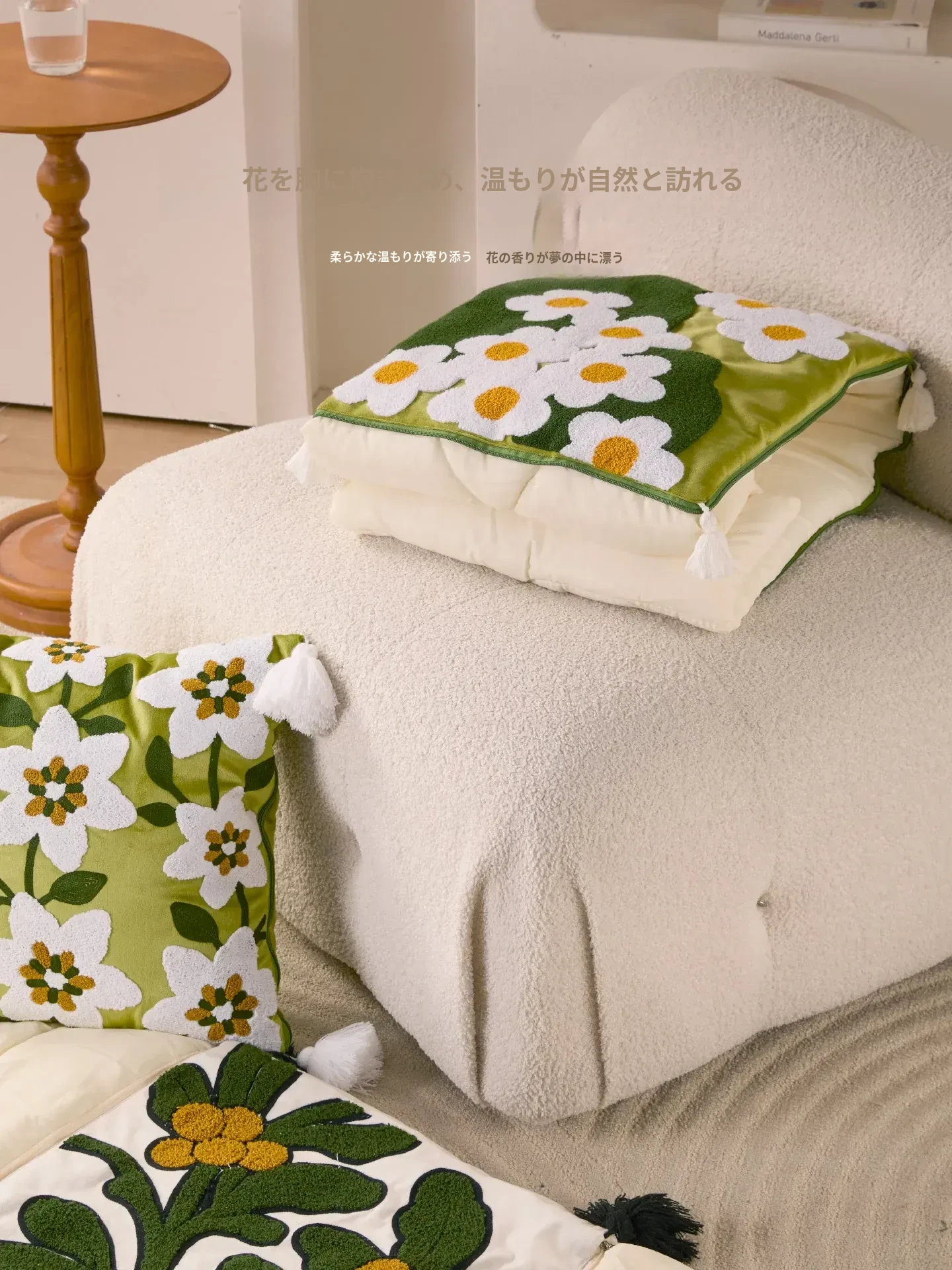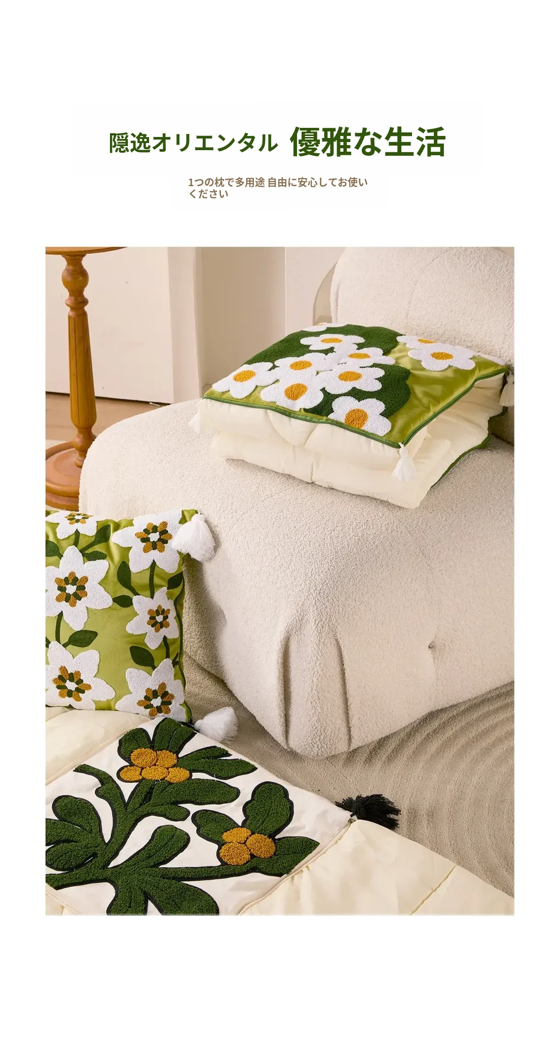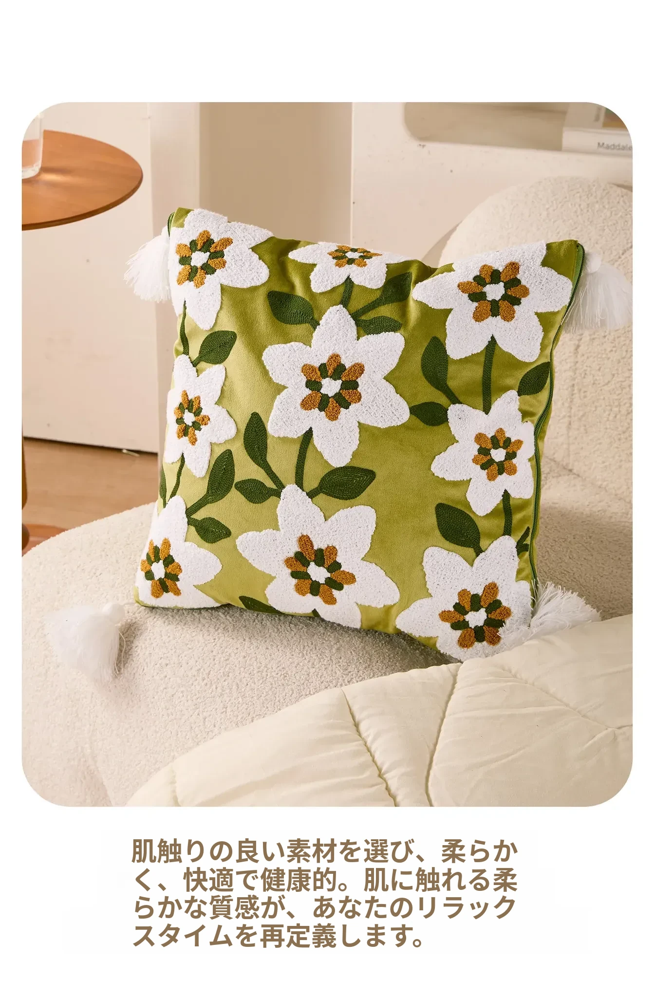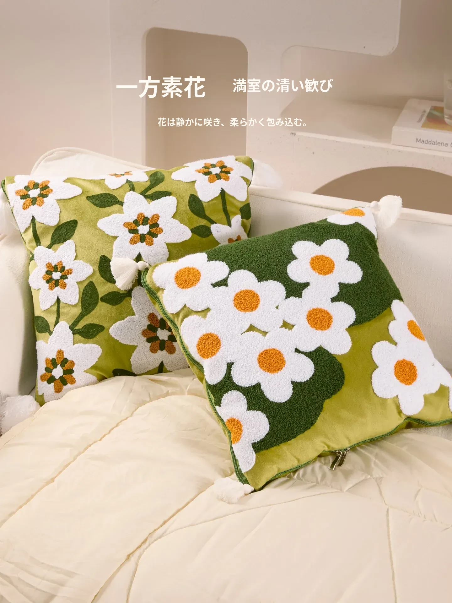 素白繁花クッションカバー
