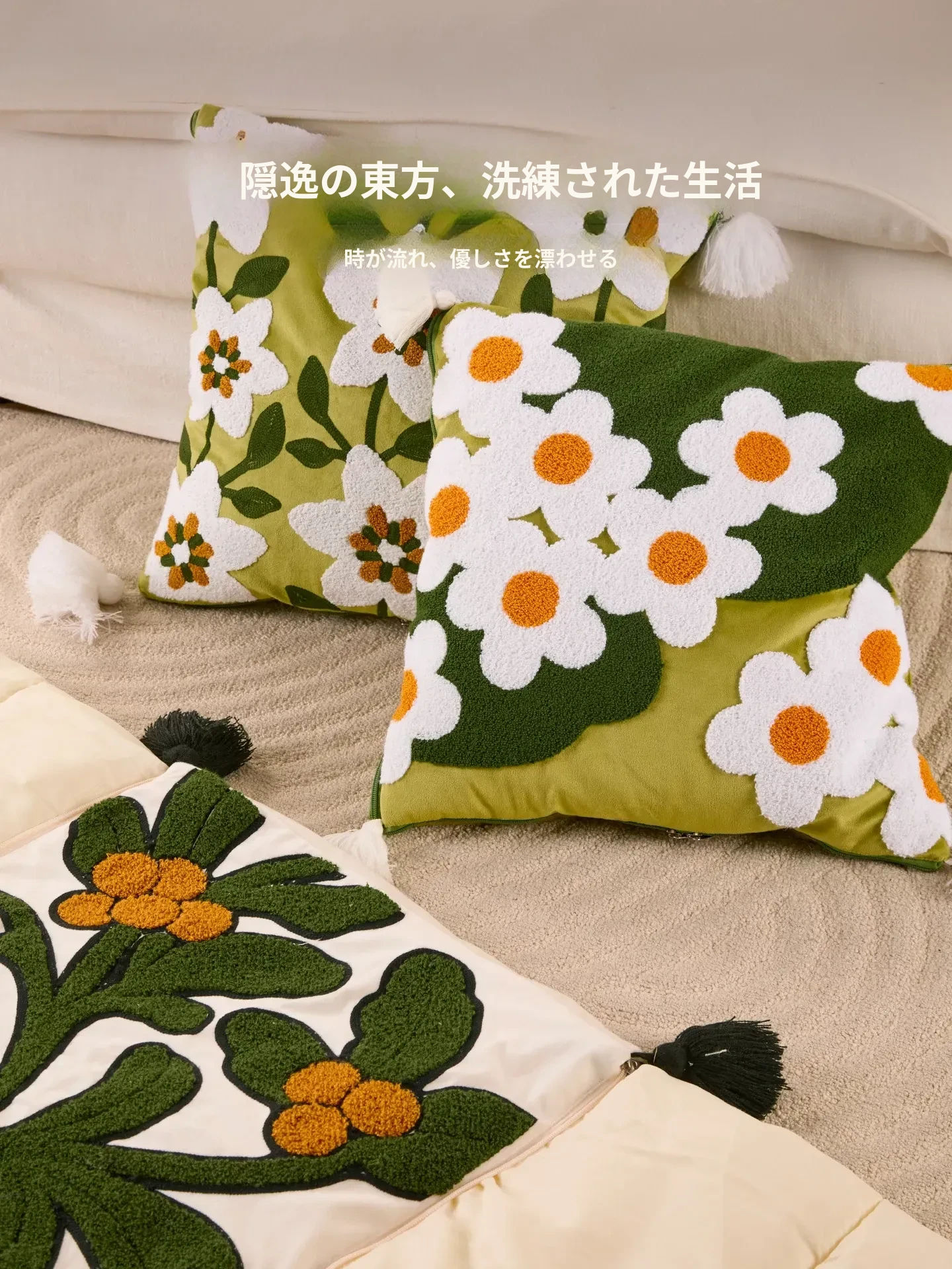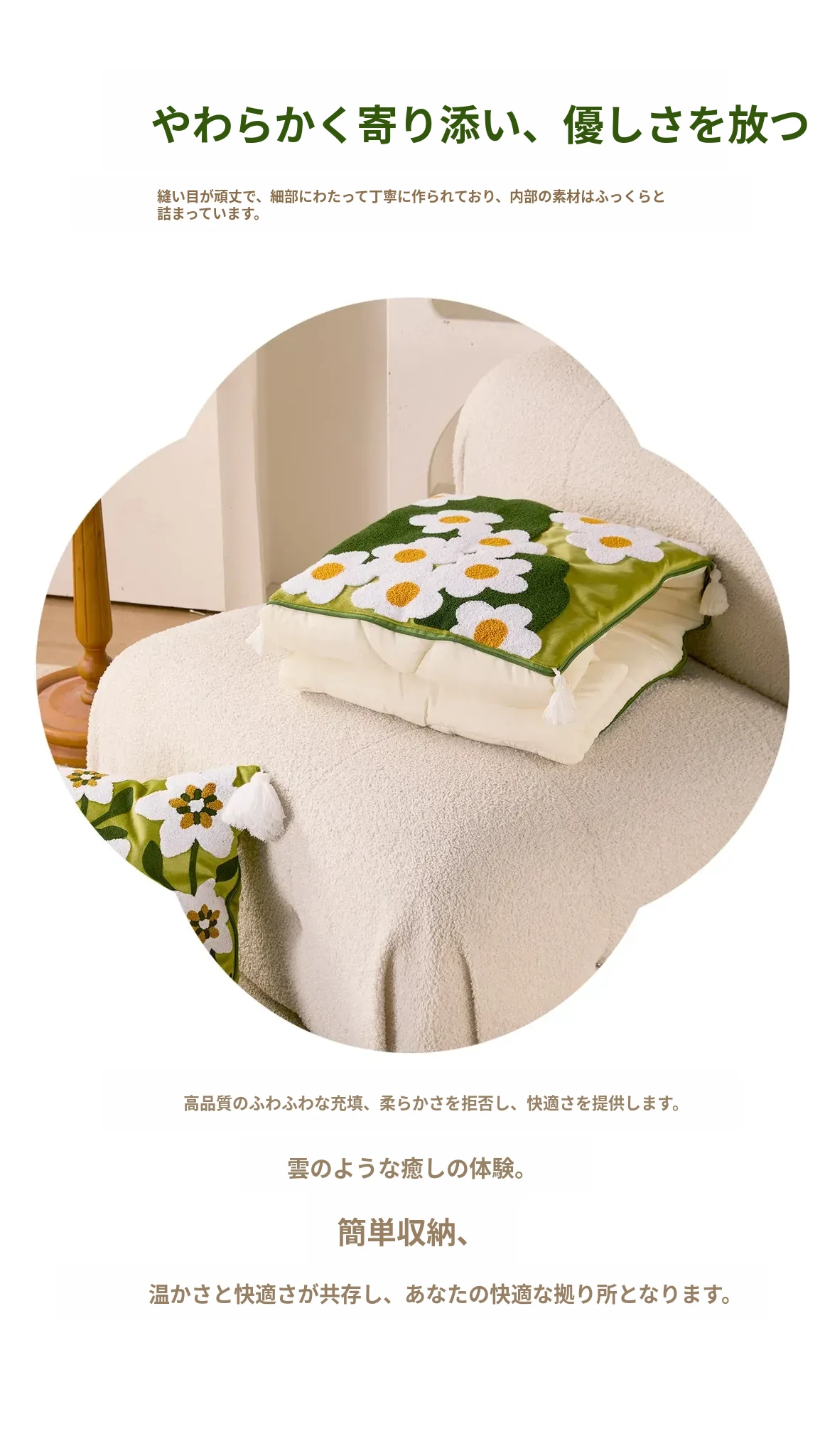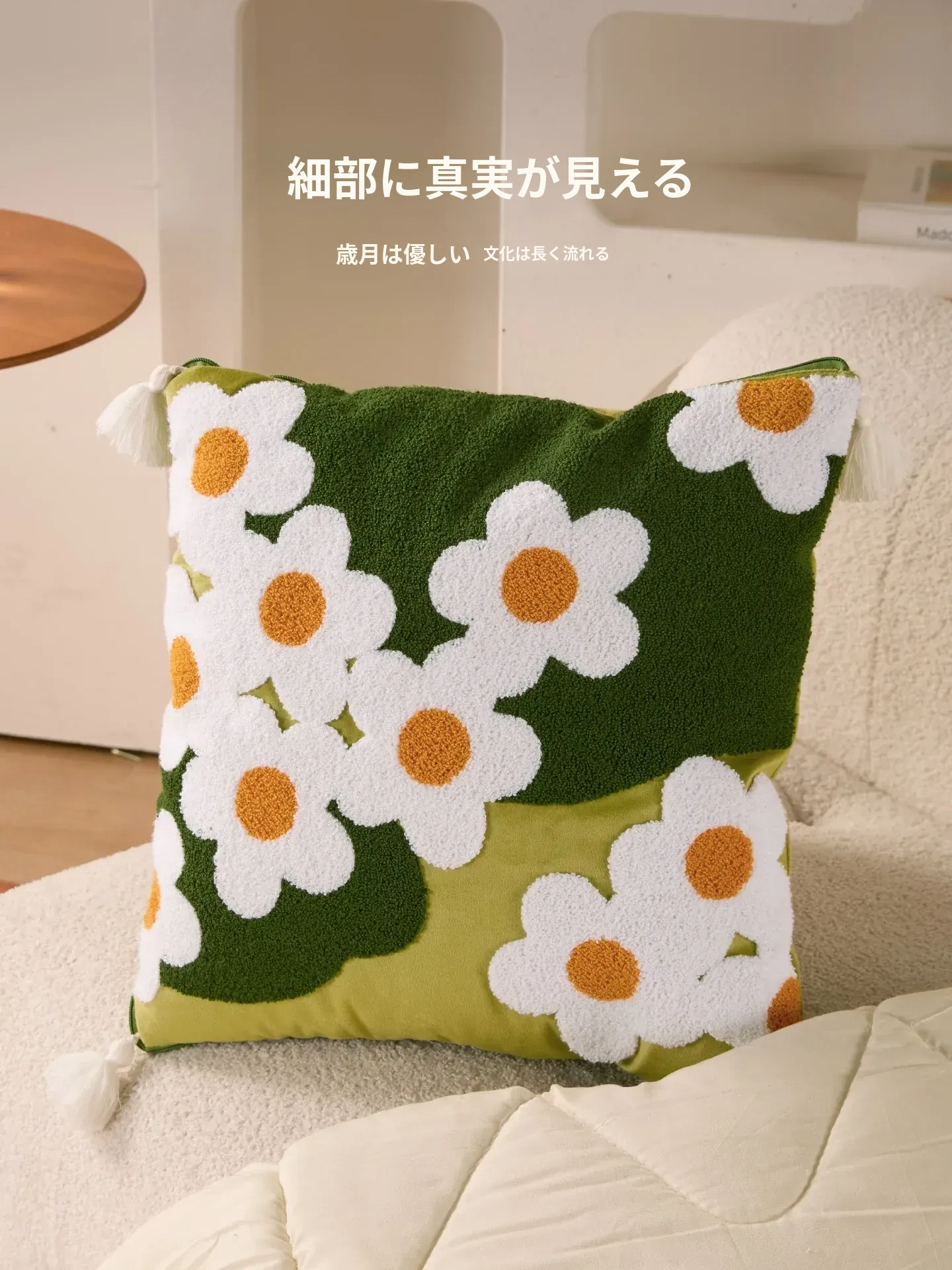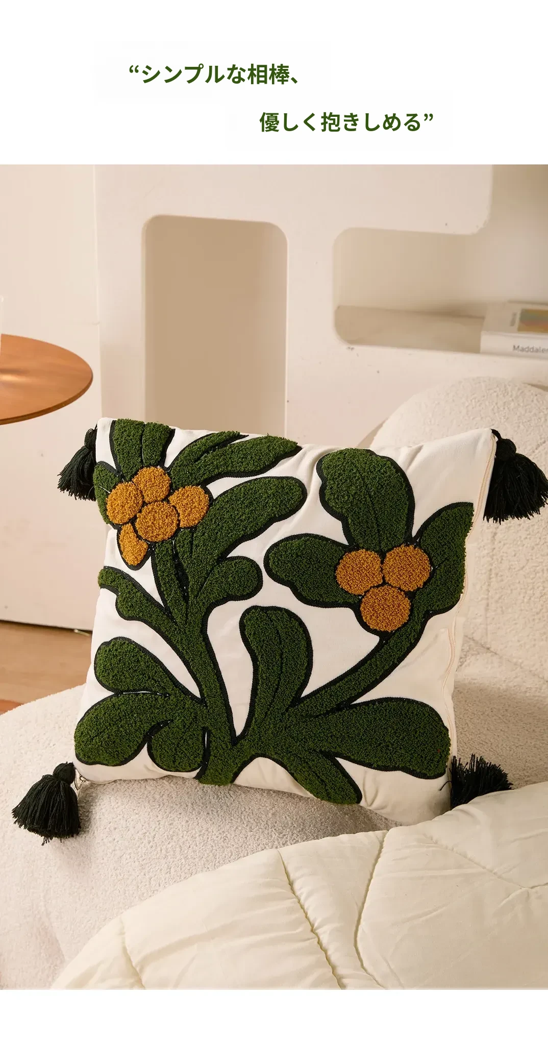 素白繁花クッションカバー