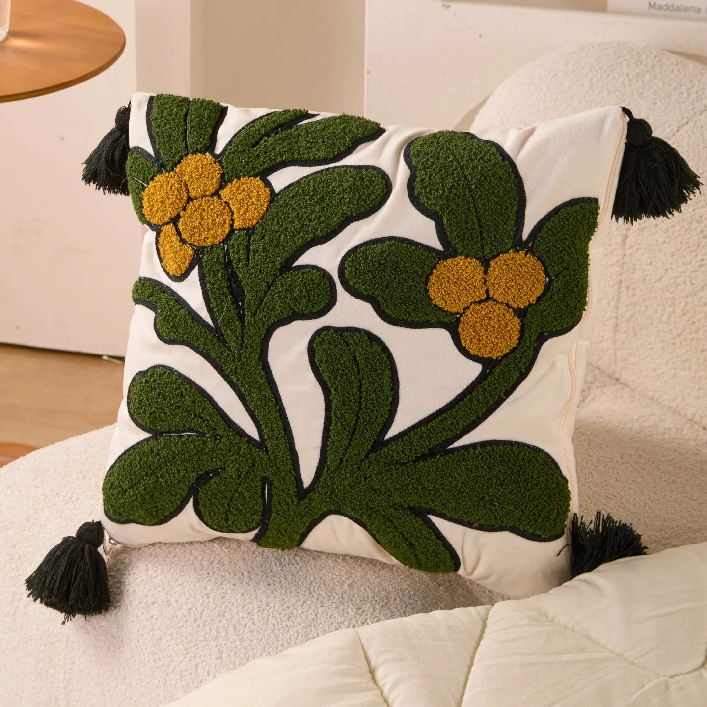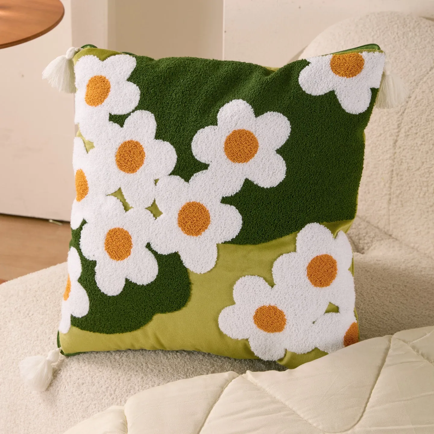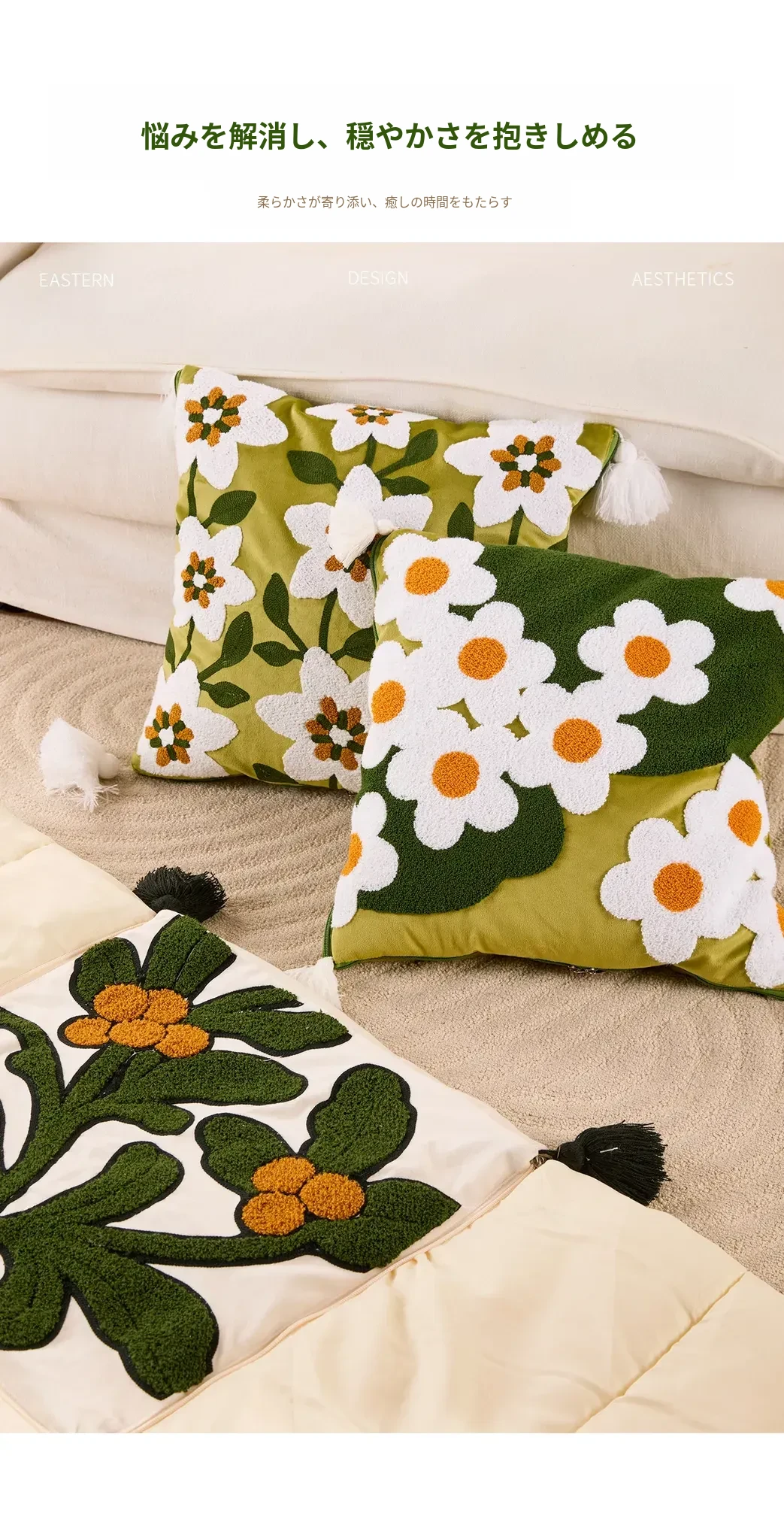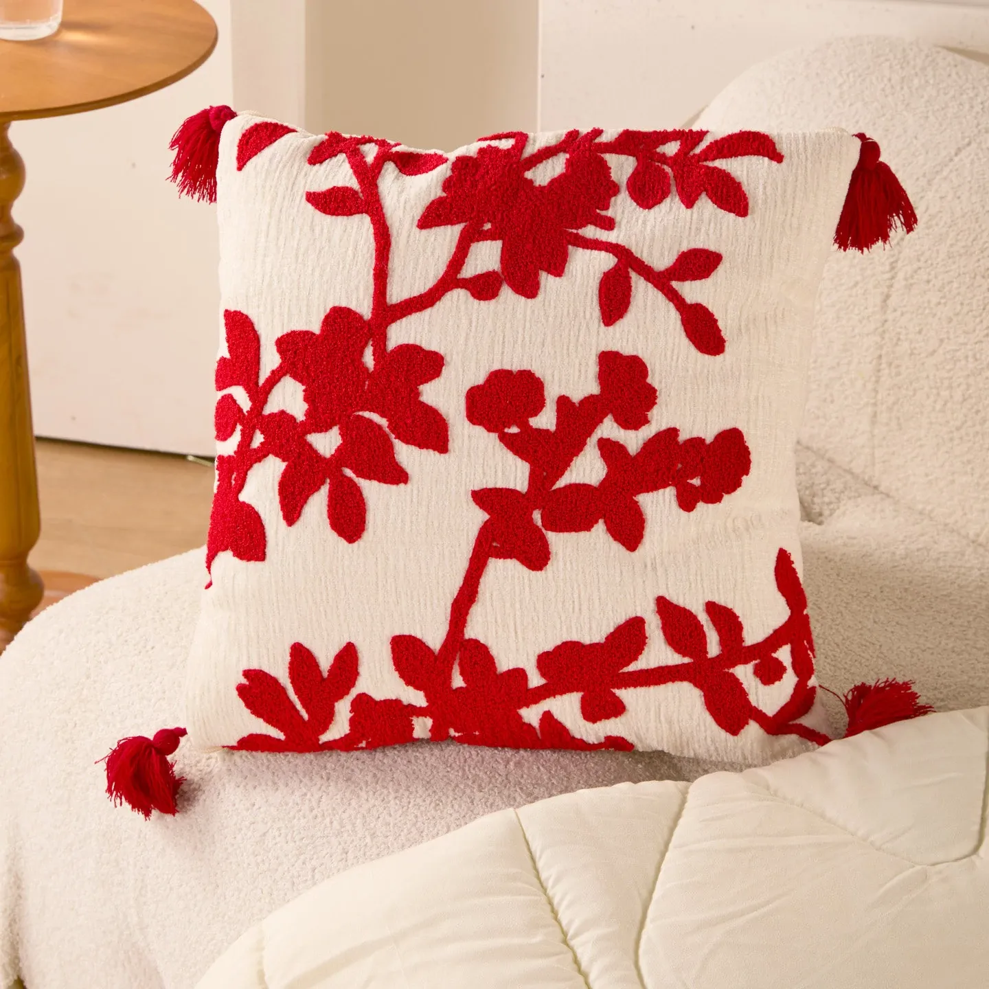 素白繁花クッションカバー