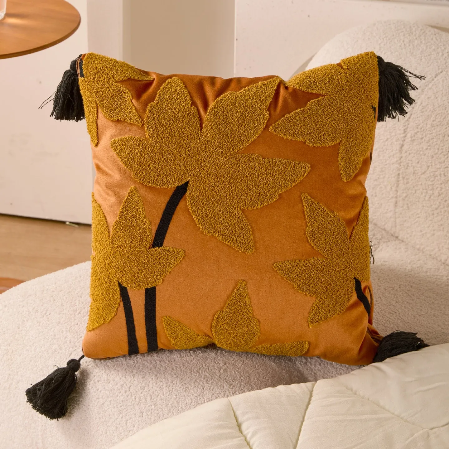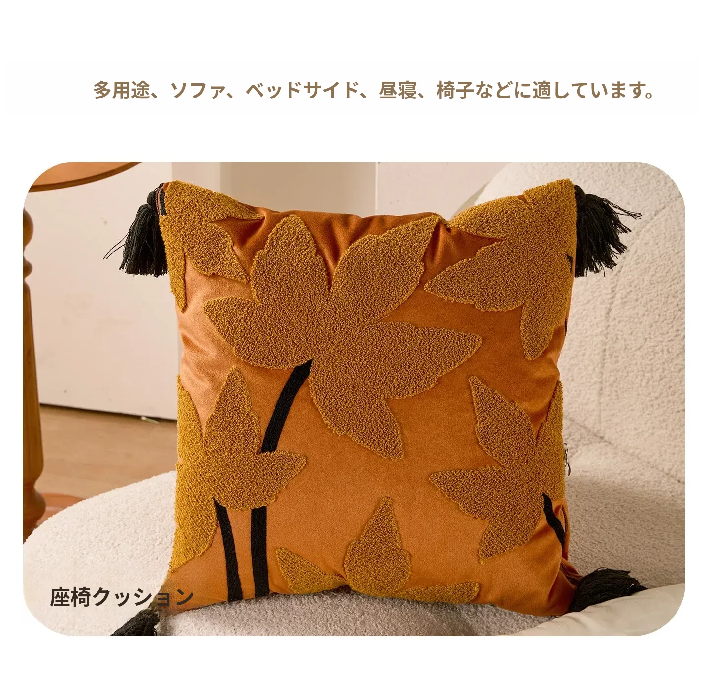 暖橙葉語クッションカバー