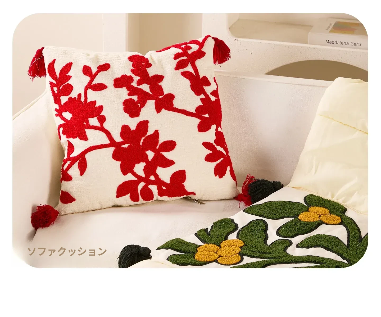 赤いフリル花便箋クッションカバー