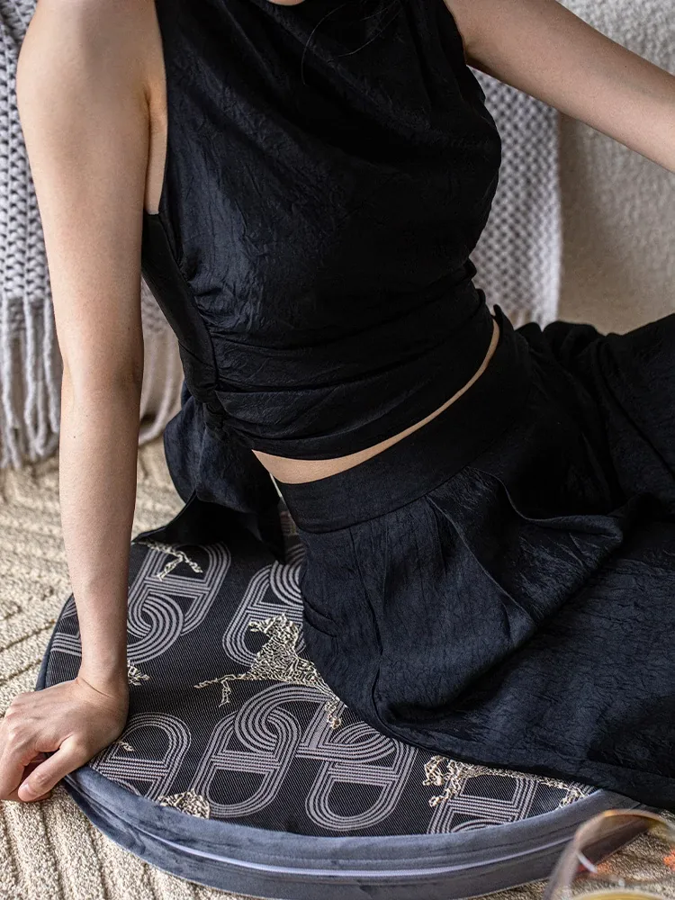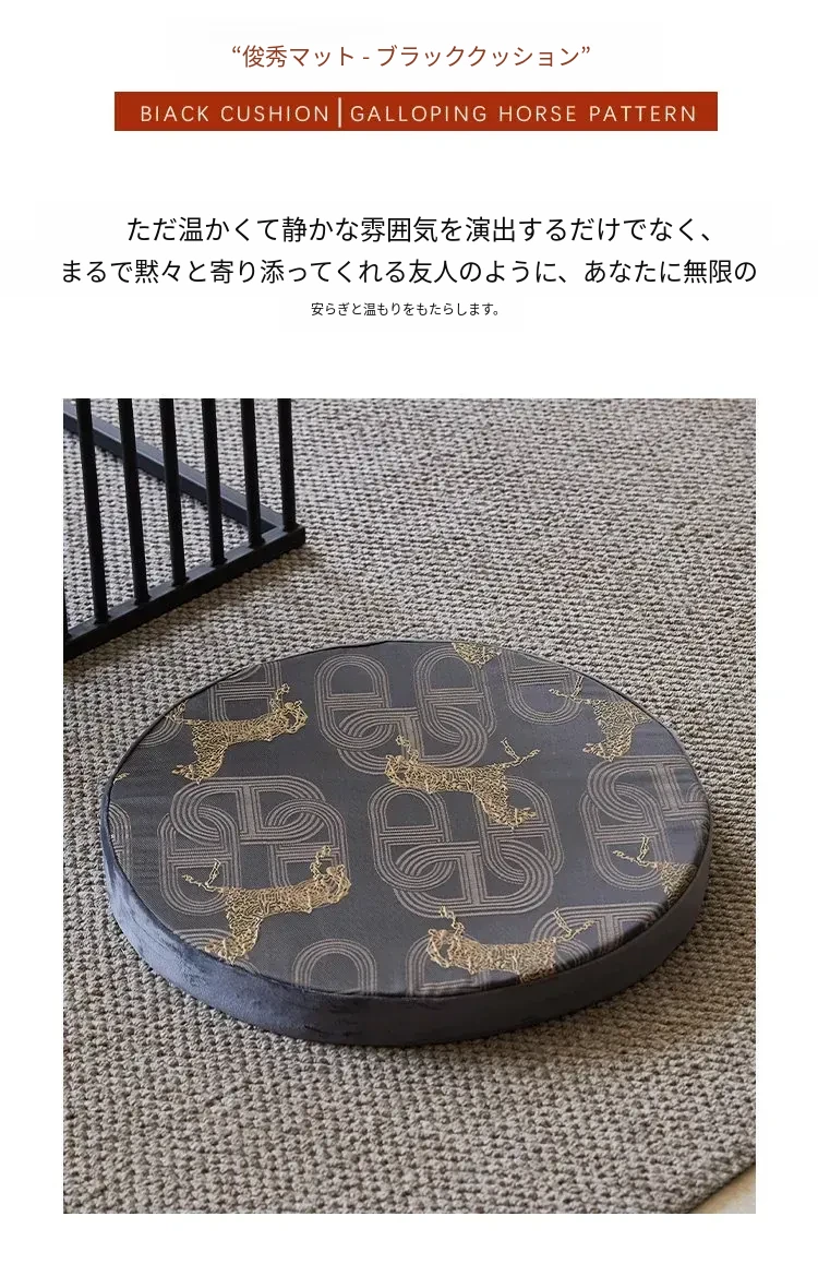 馬の黒いクッション - 丸型