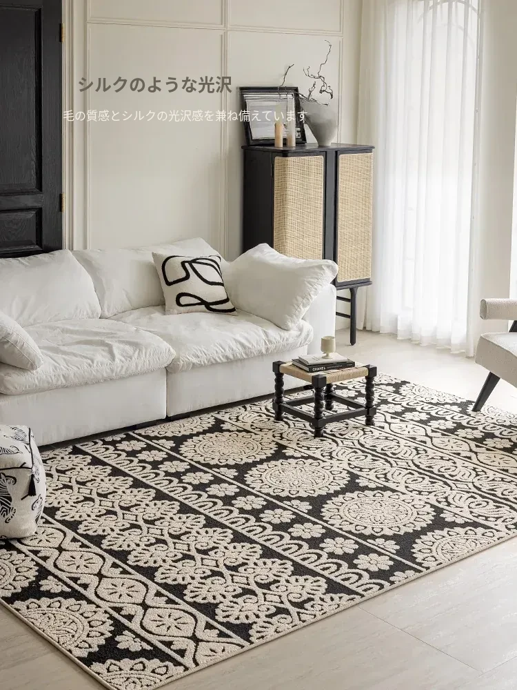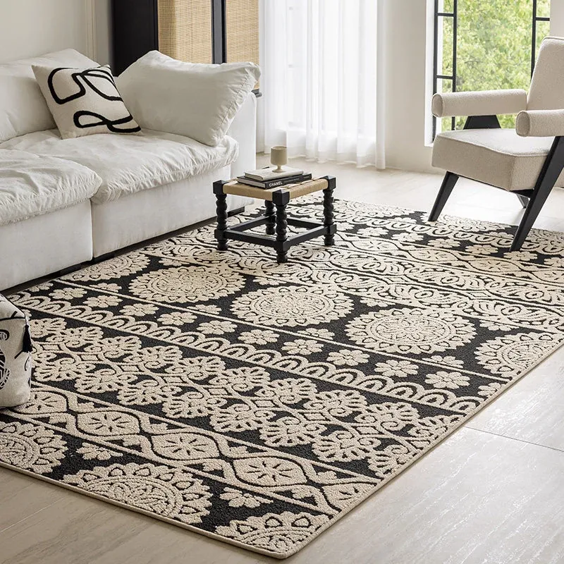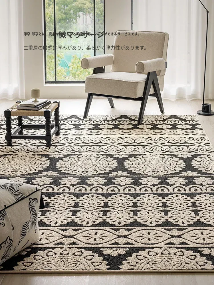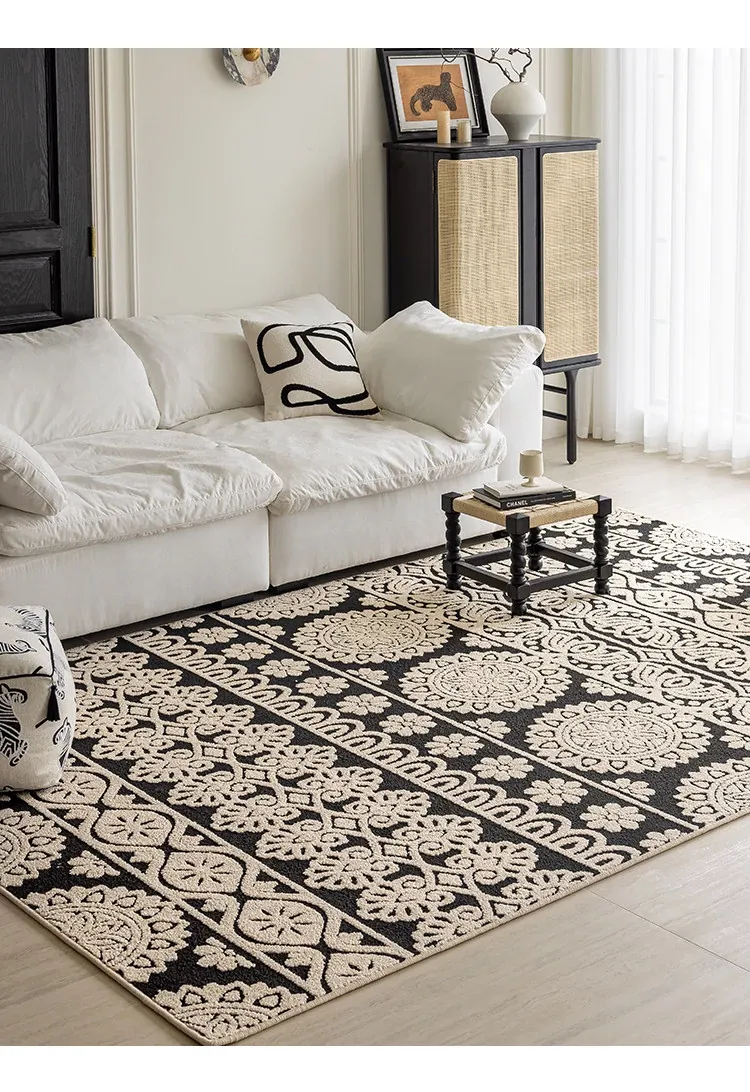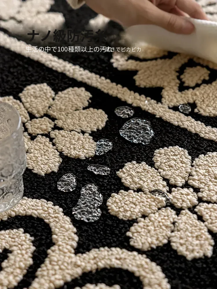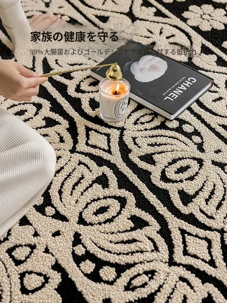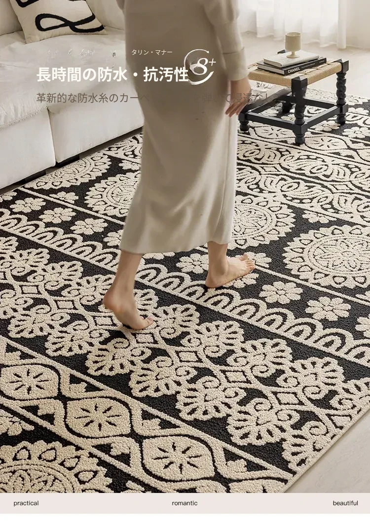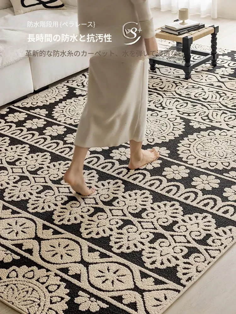 アメリカンレトロリビングルームカーペット - 防水&防汚、簡単お手入れで贅沢感アップ!ソファやベッドサイドにぴったりの高級感溢れるデザイン。清潔で快適な空間を演出します!