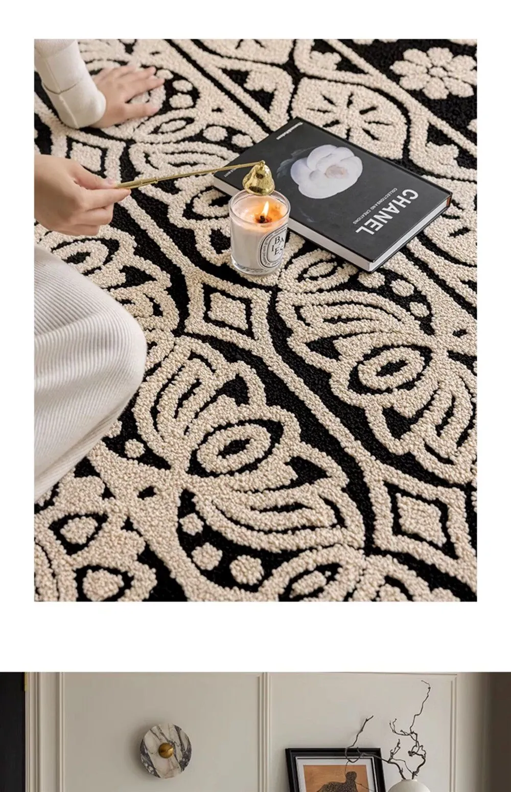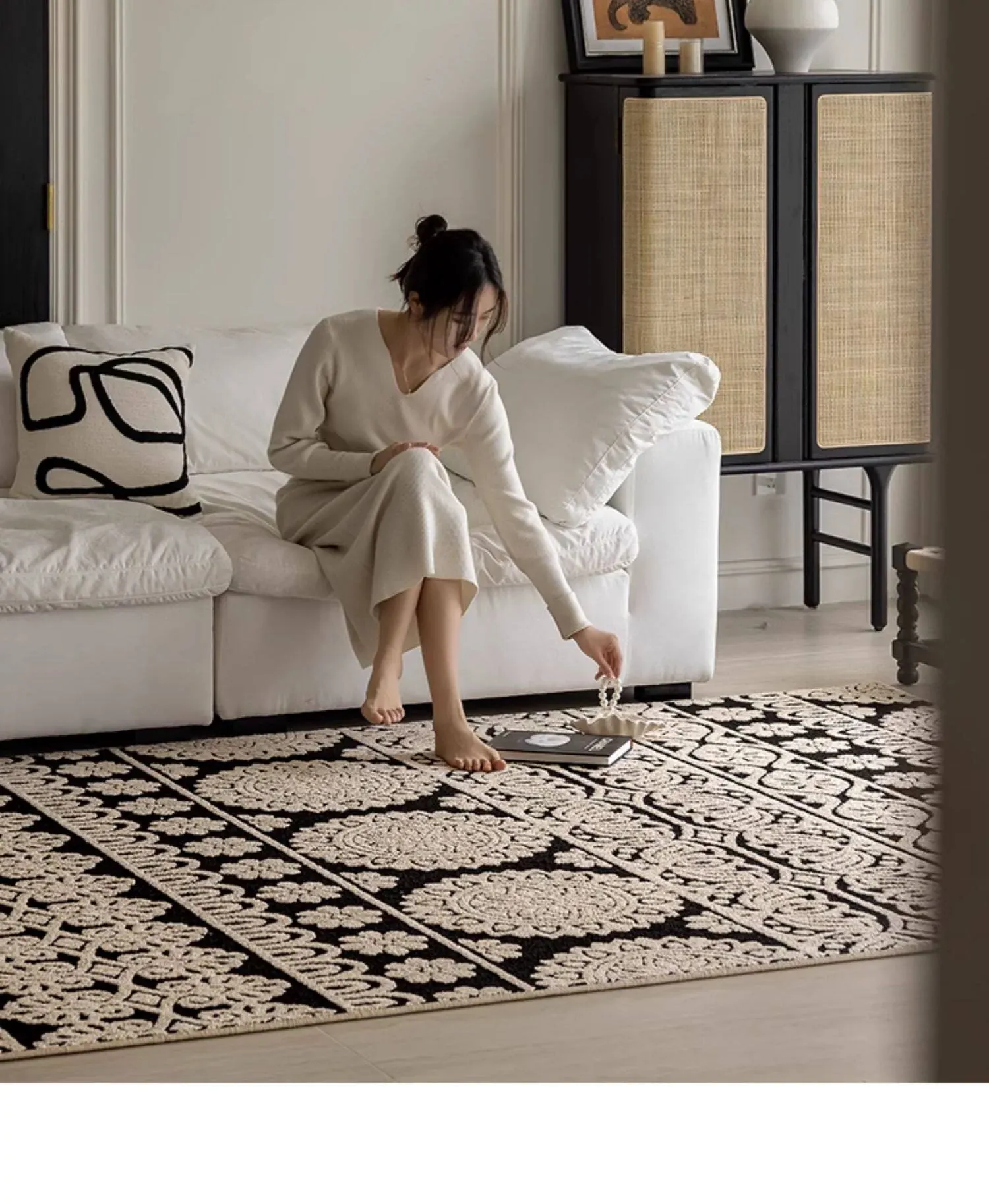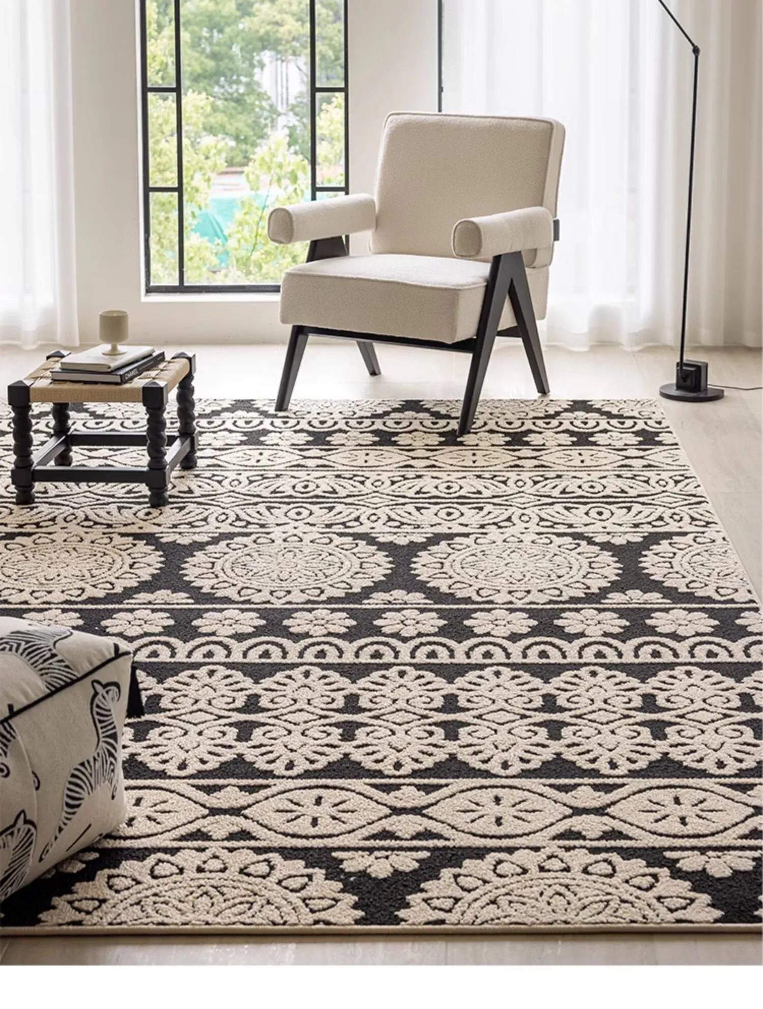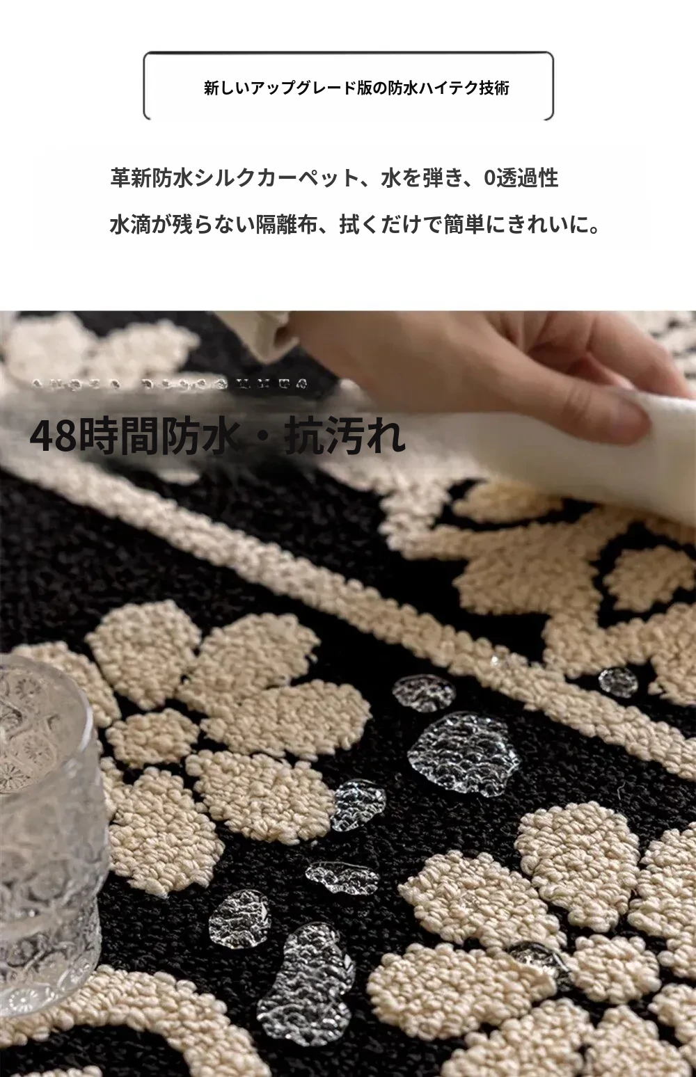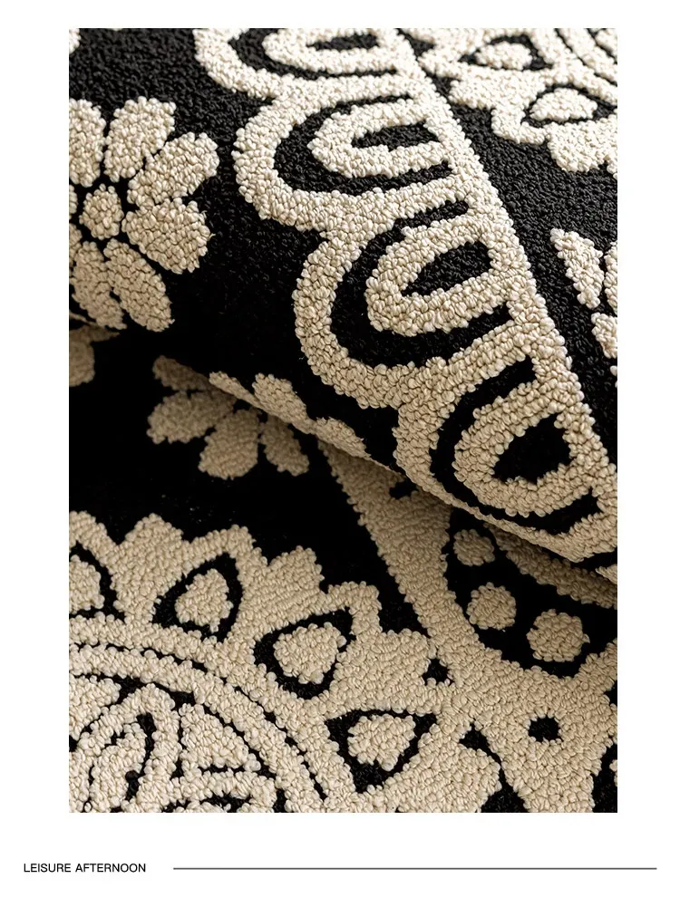 アメリカンレトロリビングルームカーペット - 防水&防汚、簡単お手入れで贅沢感アップ!ソファやベッドサイドにぴったりの高級感溢れるデザイン。清潔で快適な空間を演出します!