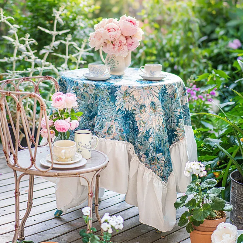Caviosen アメリカンカントリースタイル テーブルクロス 高級感あふれるダイニングテーブルカバー バルコニー用 丸テーブルカバー ティーテーブル用 おしゃれで上質なインテリアを演出!
