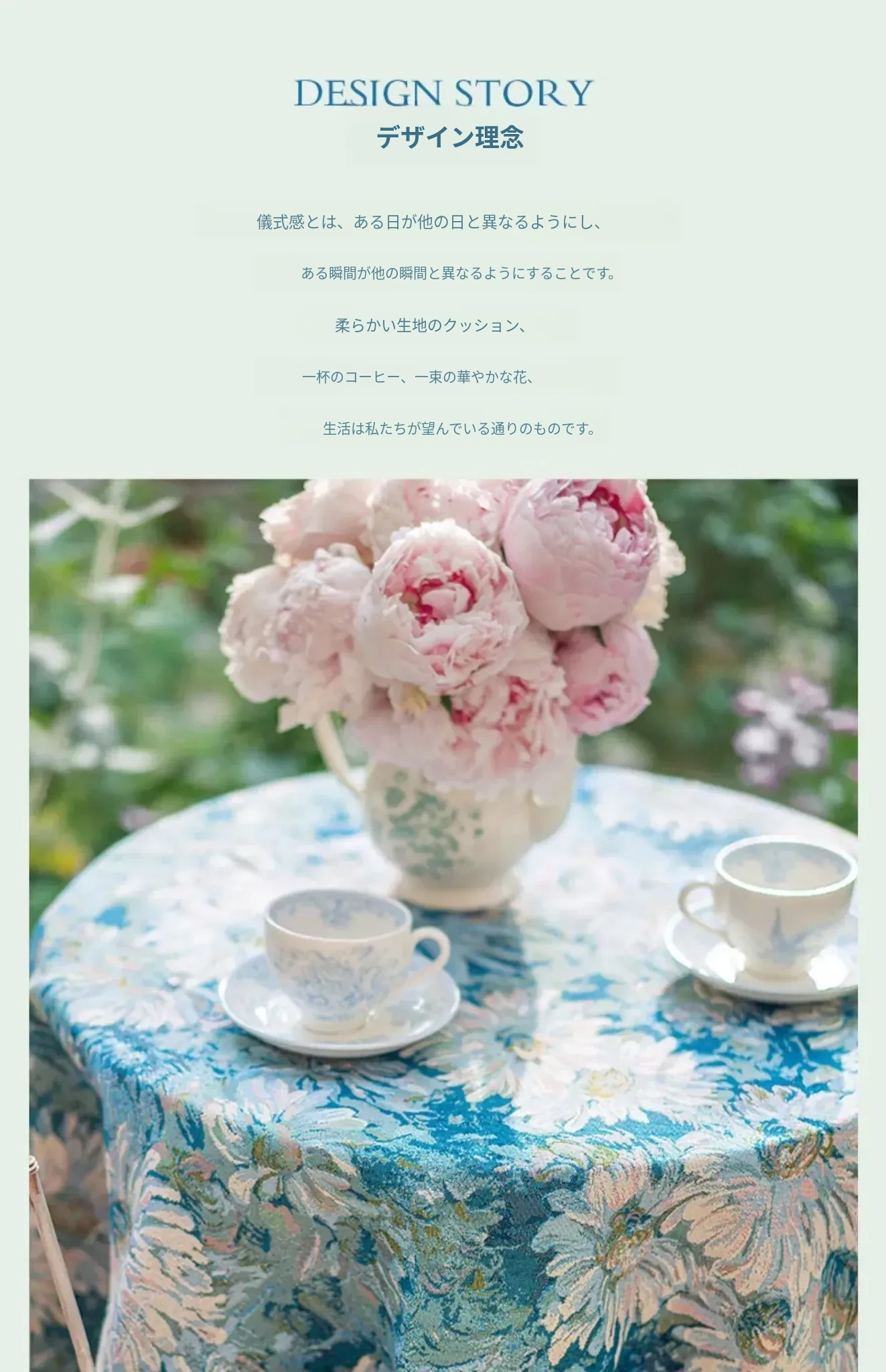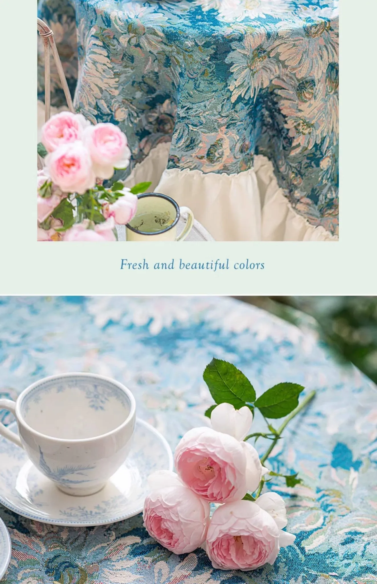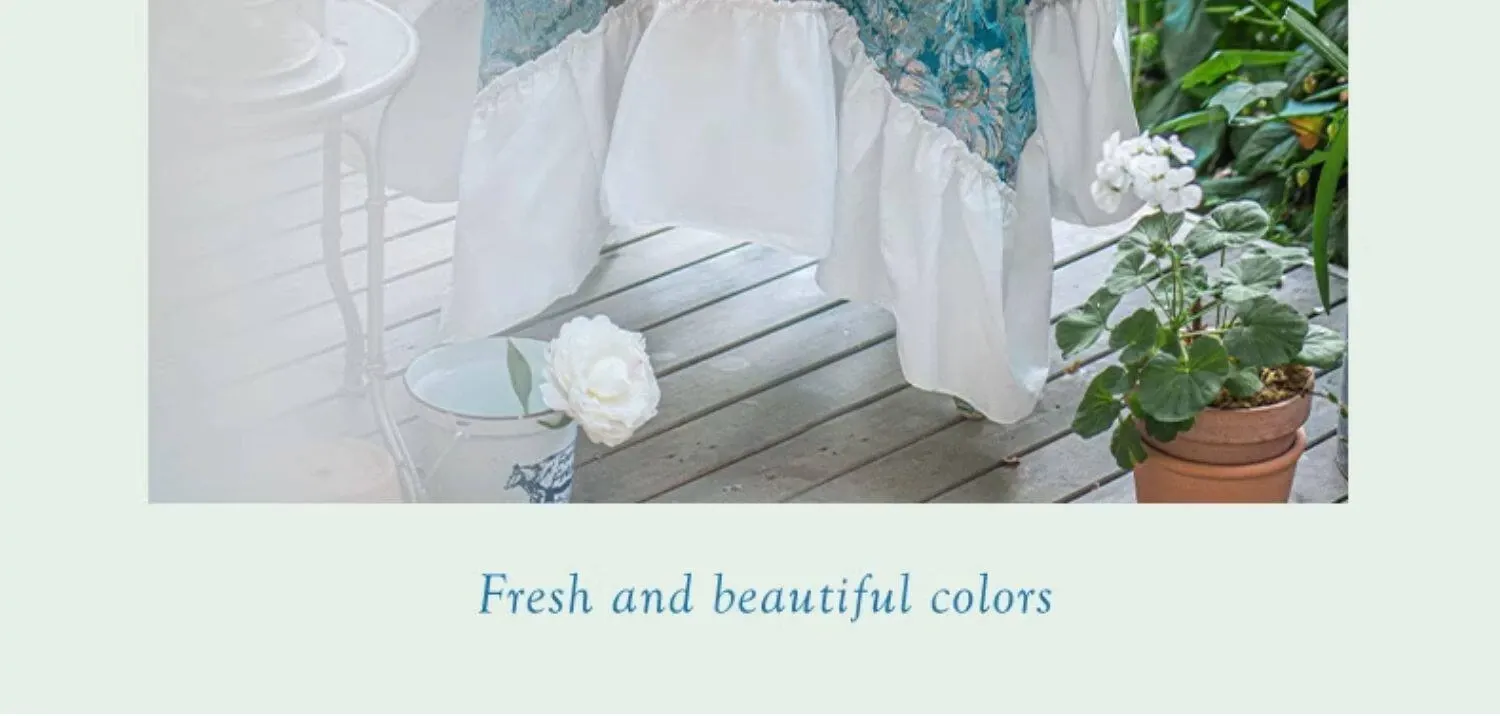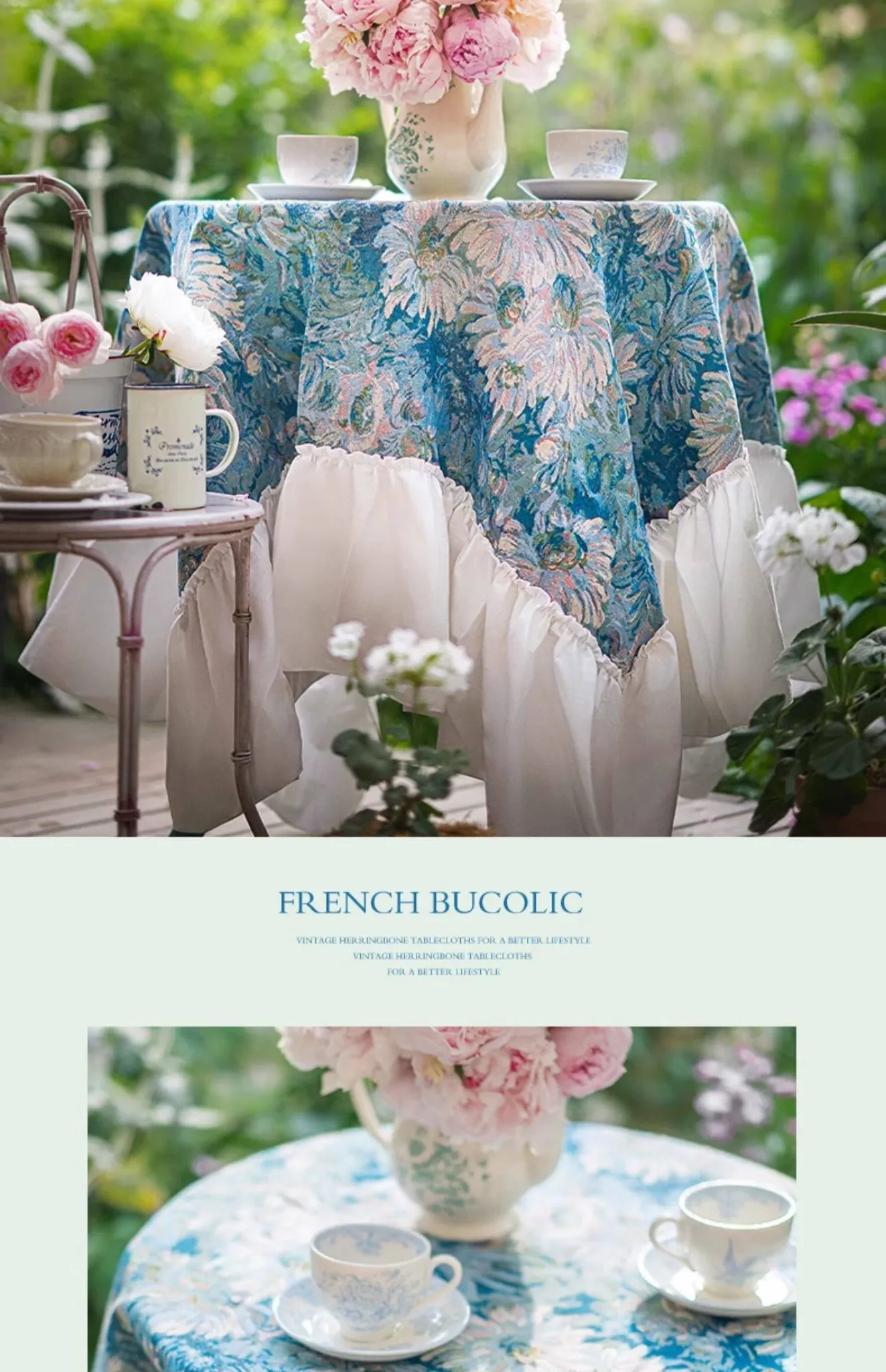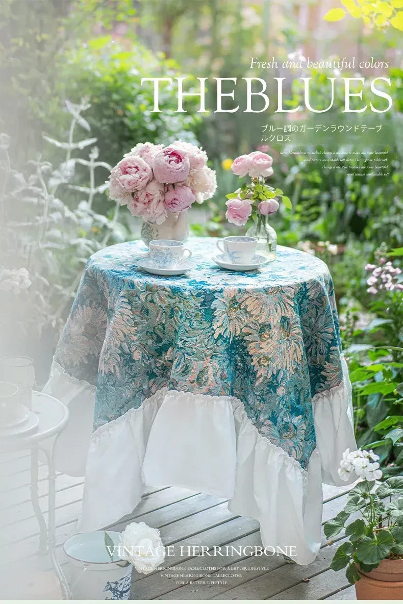 ブルー調のガーデンラウンドテーブルクロス