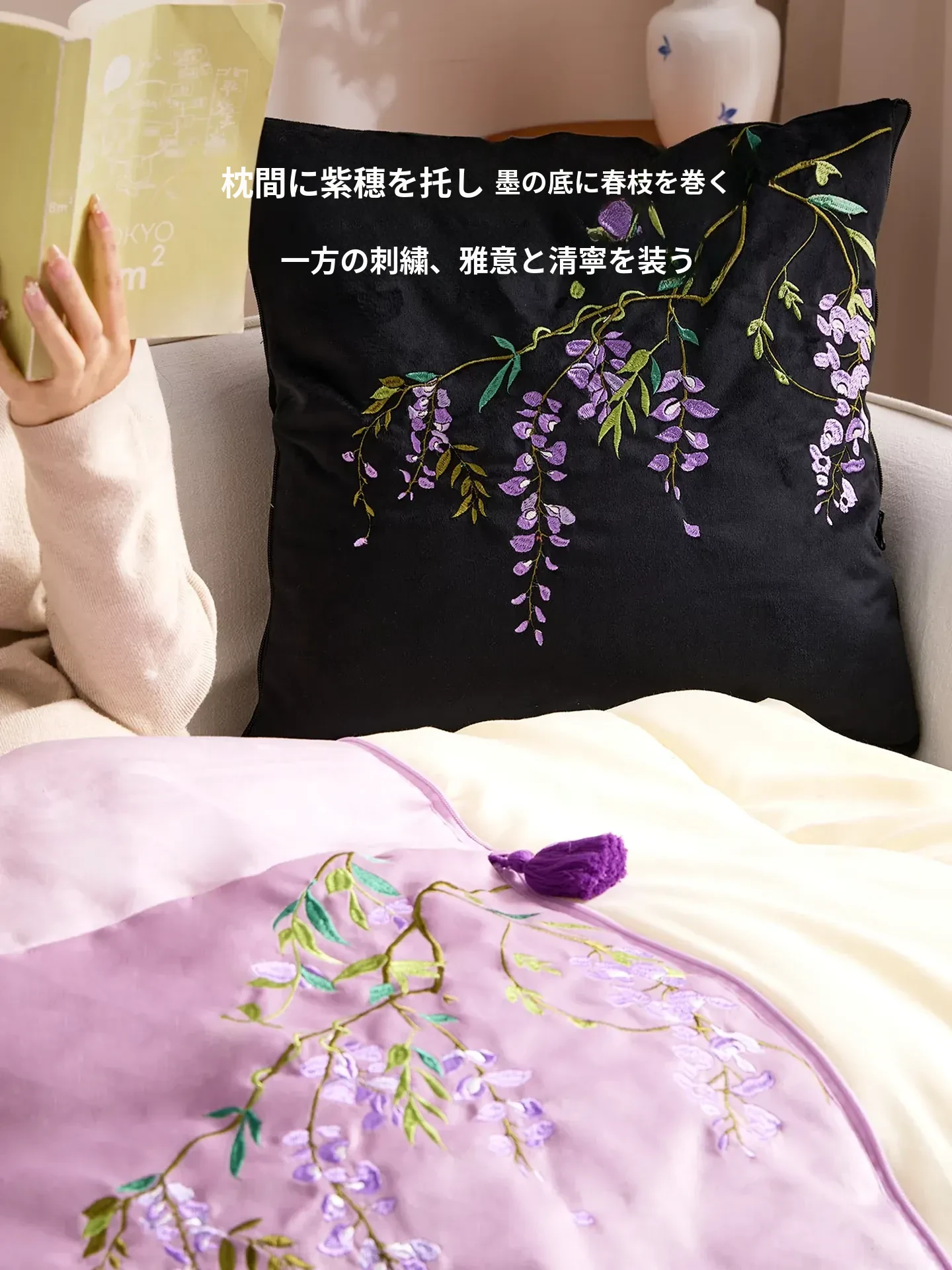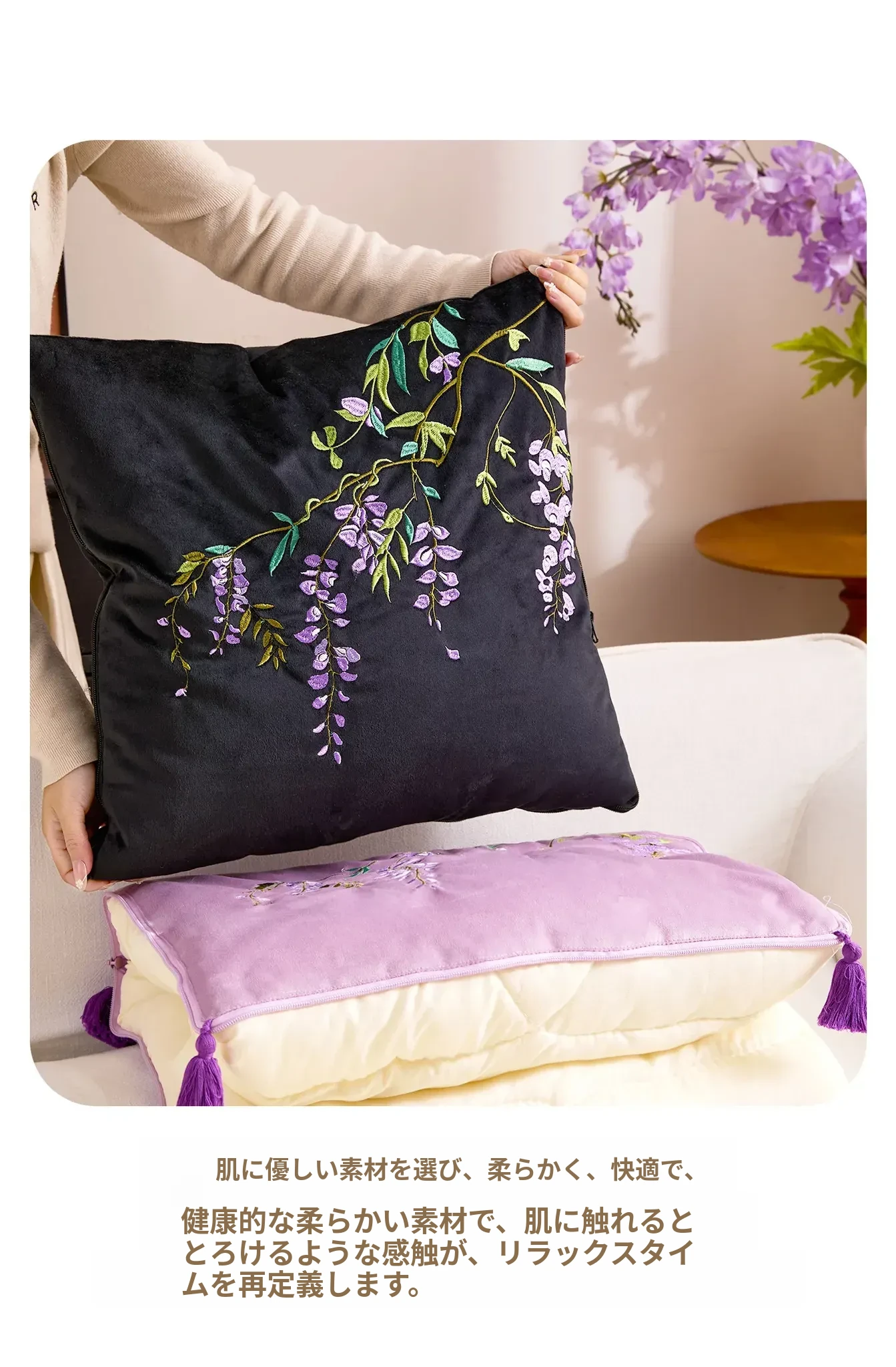 紫藤清韵クッションカバー