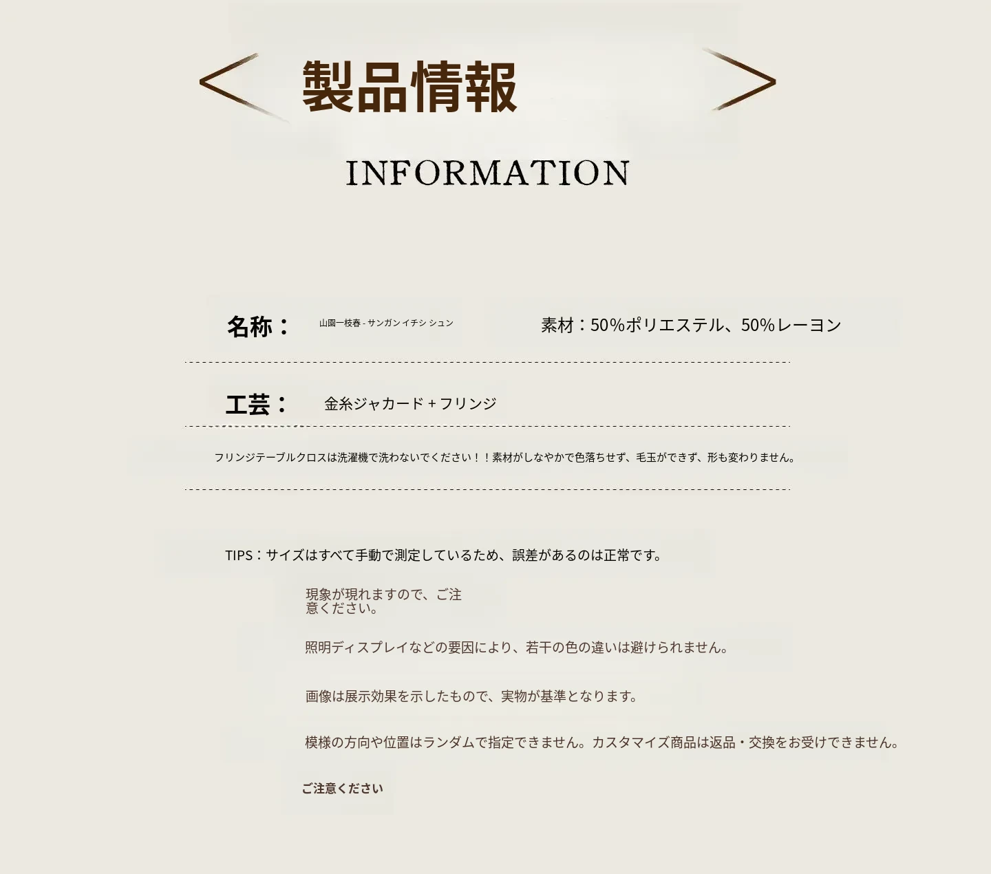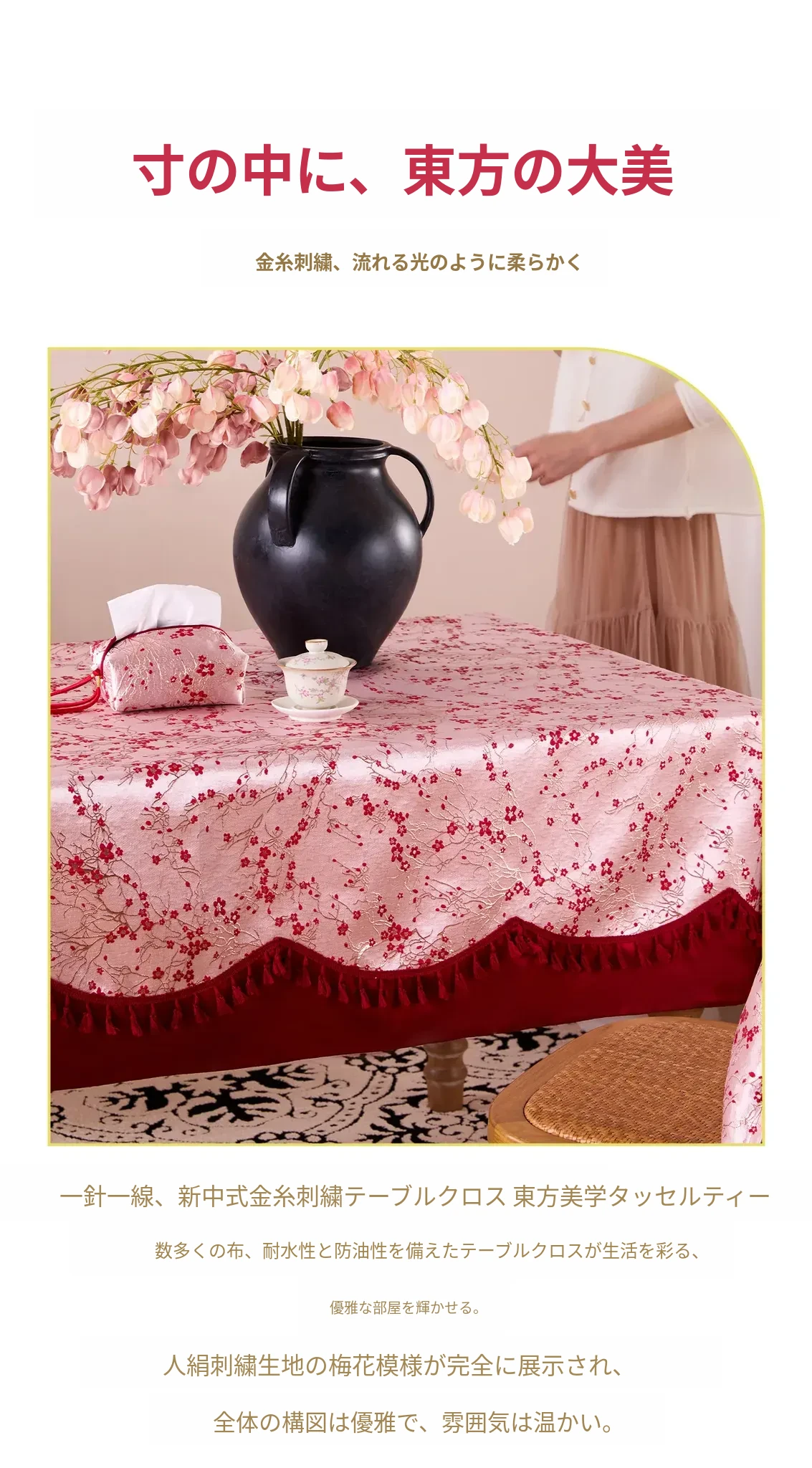カビオセン中国風クリエイティブテーブルクロス - 高級感あふれる軽奢スタイル!洗わずに使える防水・防油のダイニングマットで、あなたの食卓を美しく演出します。
