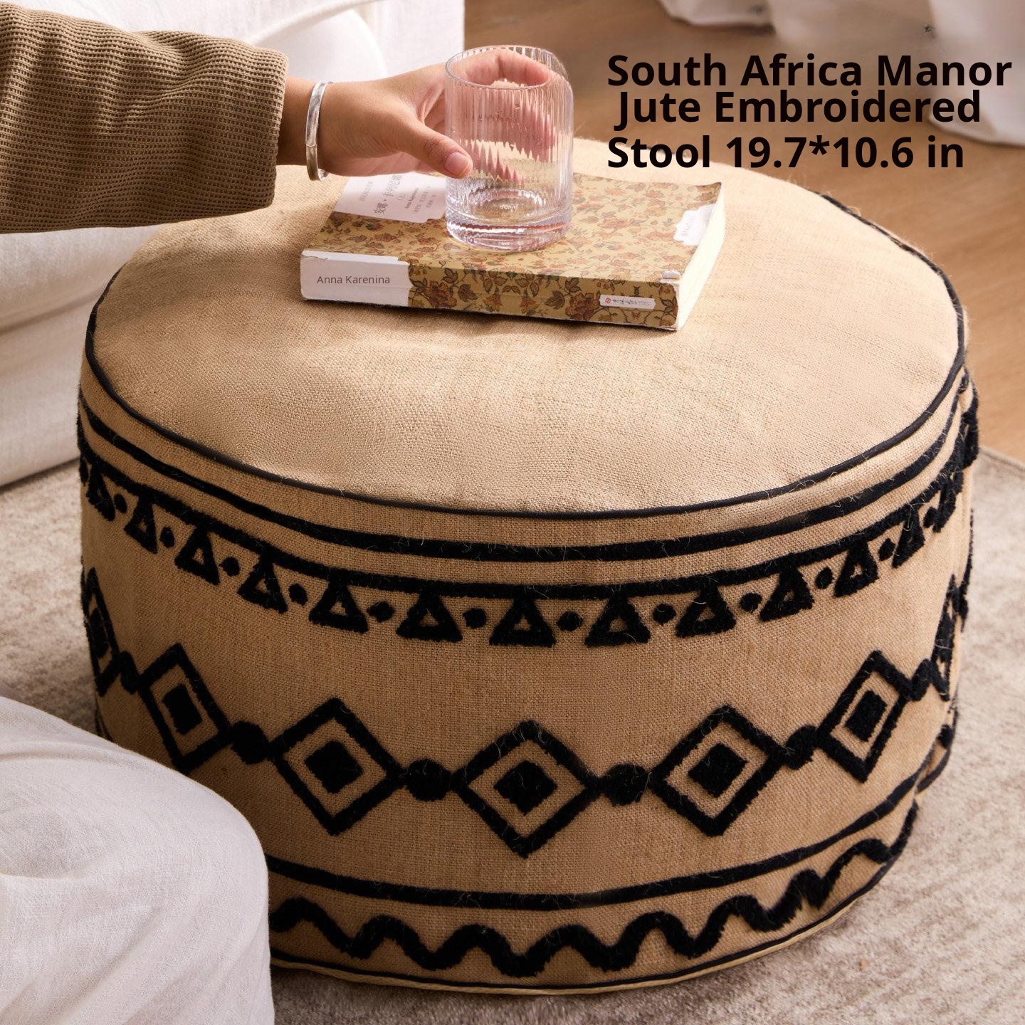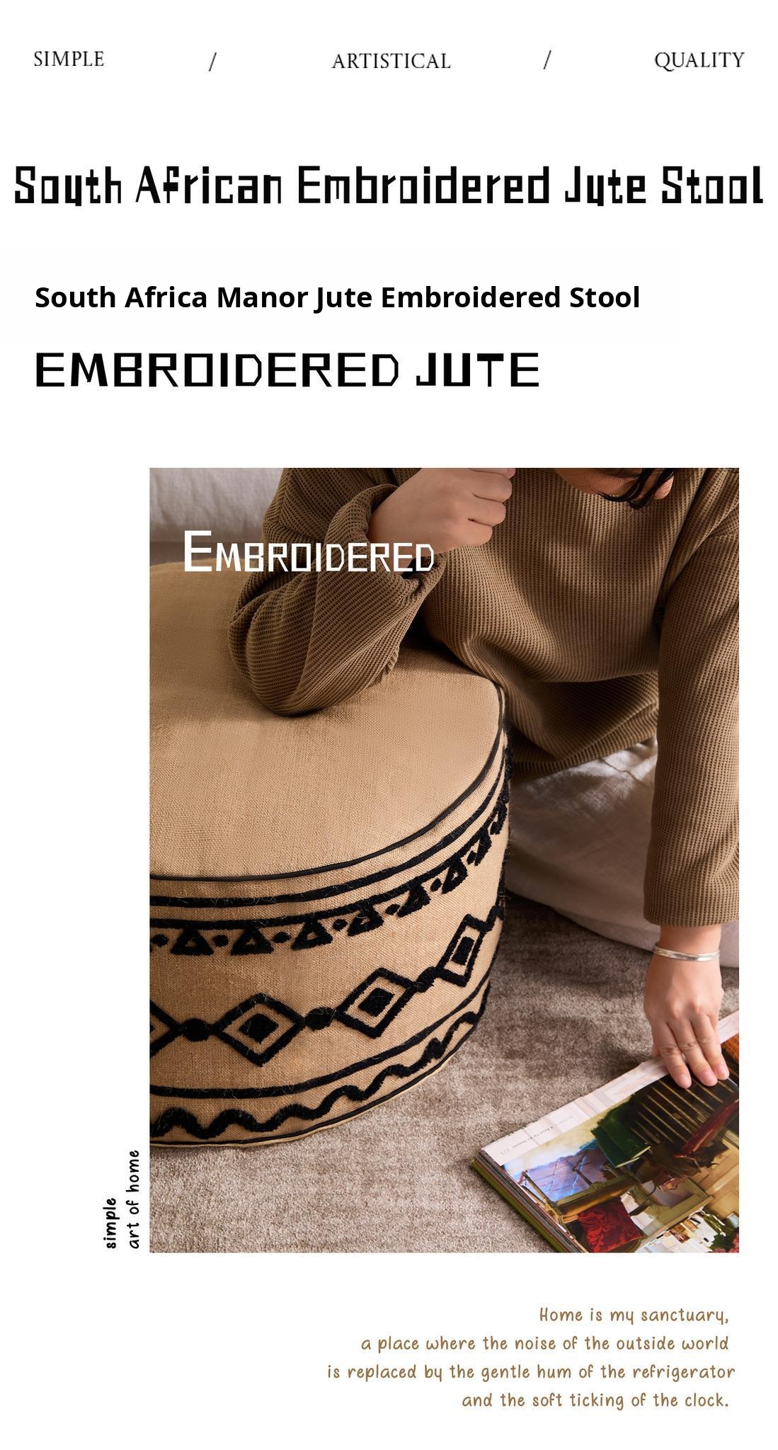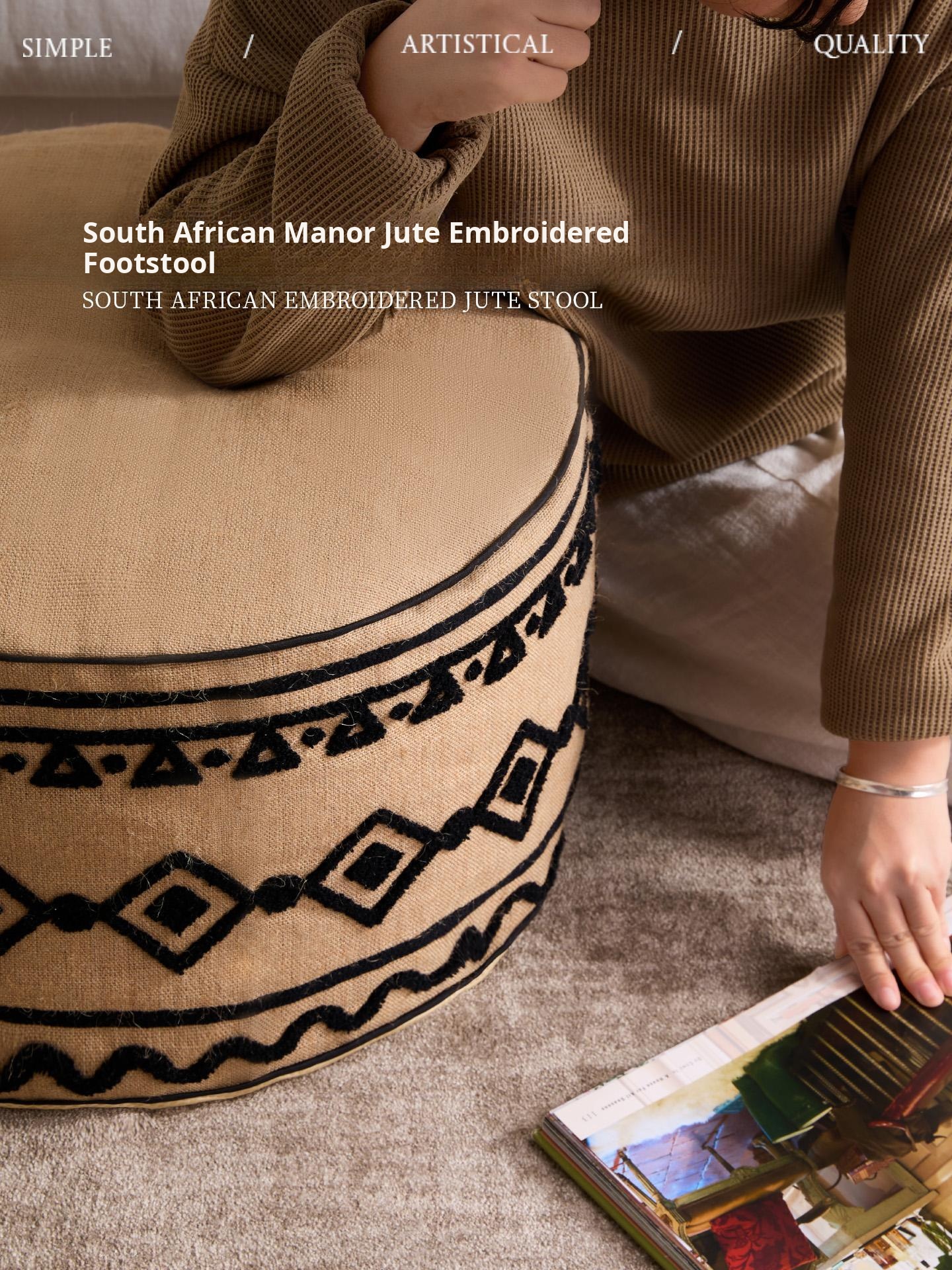 South African Manor Jute Embroidered Pouf