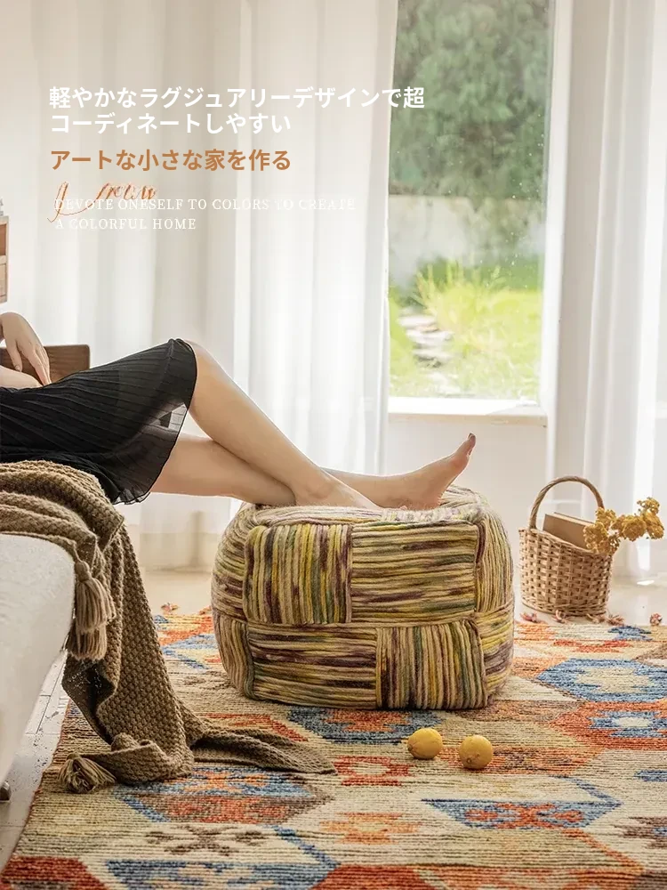 朱色と紫色のウールスツール
